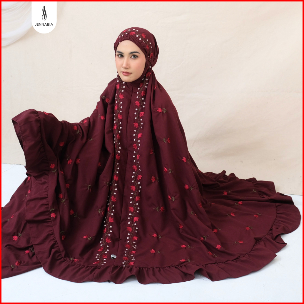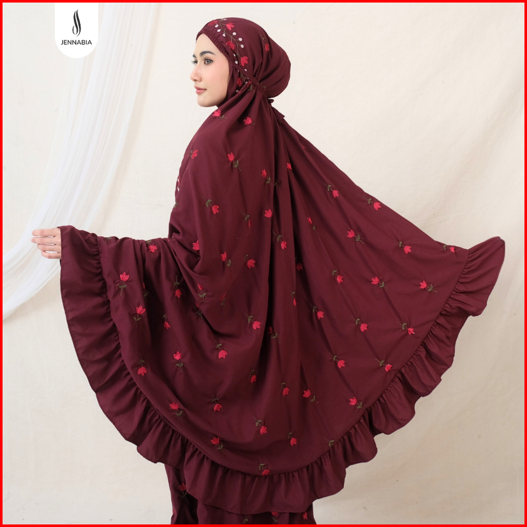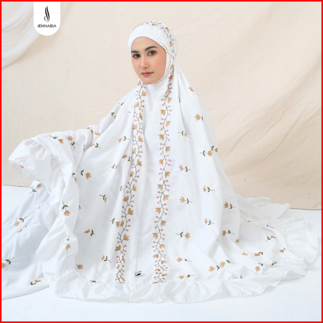Jennabia - Mukena Dewasa Jumbo Bordir Salsabila Bahan Adem Premium Rempel Mewah Tidak Menerawang Elegan Cantik
