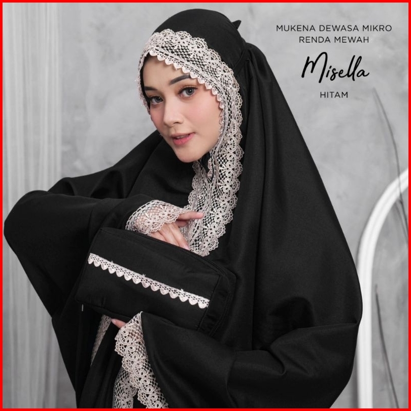 Famus - Mukena Misella Dewasa Renda Mewah 2in1 Resleting Polos Bahan Katun Mikro Hitam Putih Navy Lavender Milo Wardah P