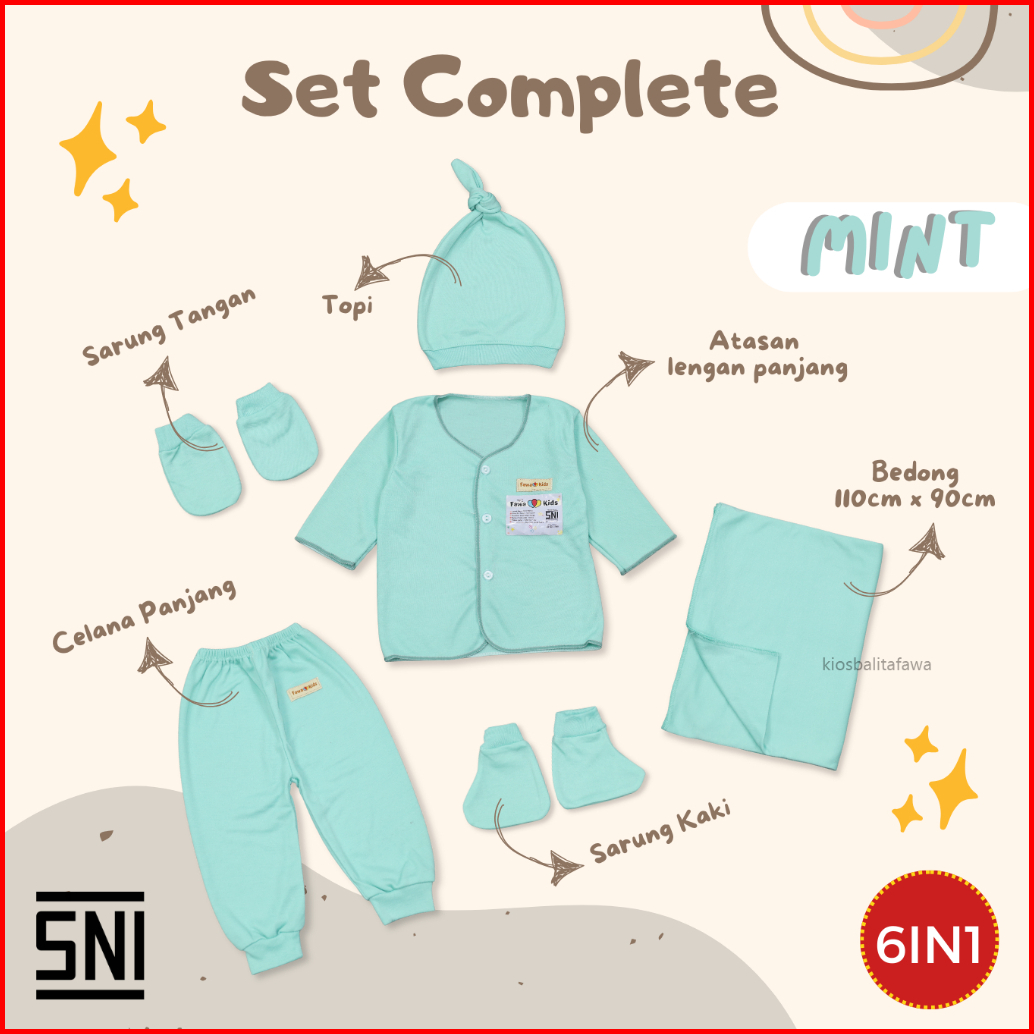 6in1 Setelan Bayi Fawa Uk 0-3 Bulan Set Baju Lengkap Bedong Topi Sarung Tangan Kaki Polos Bayi Newborn 0-6 Bulan Anak Pe