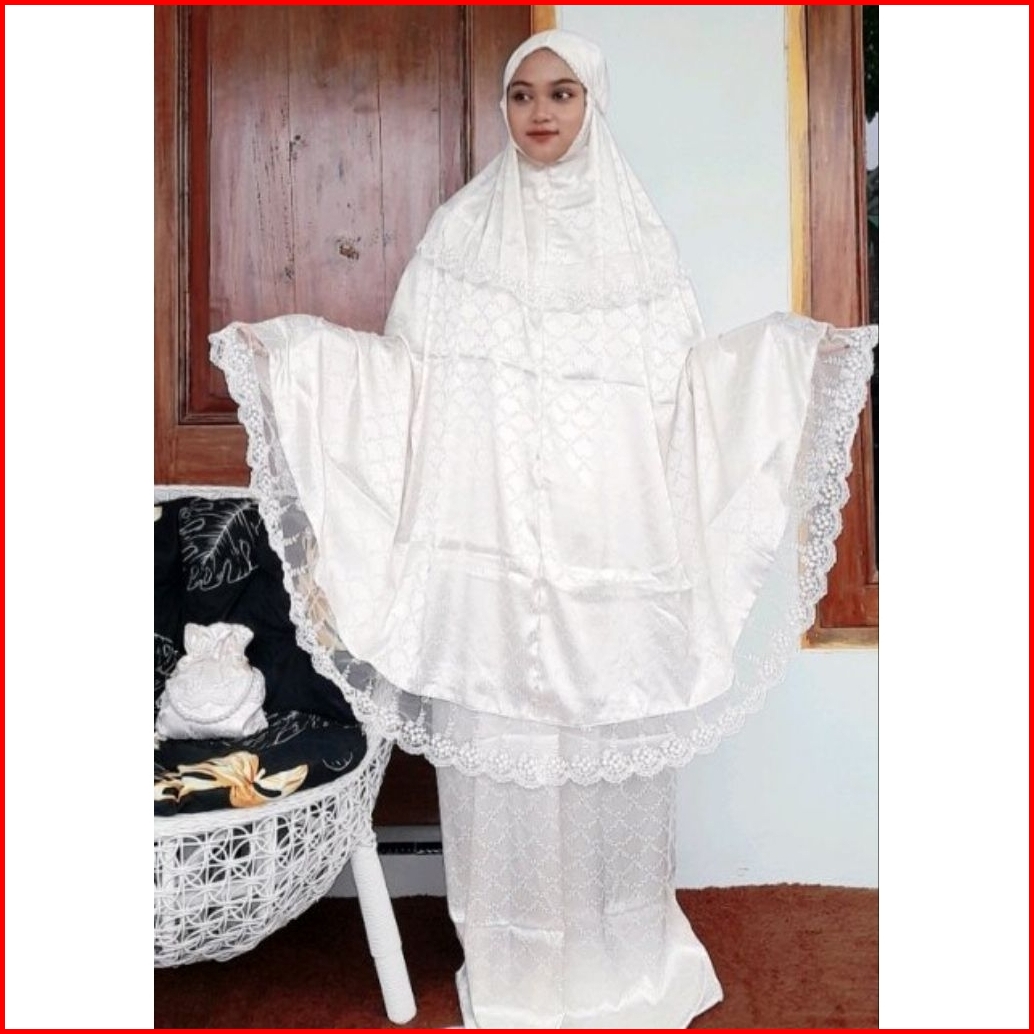 Erercollection - Mukena Mewah Armany Silk Sutra Jaguard Renda Double Mukena 2in1 Premium Dewasa Jumbo