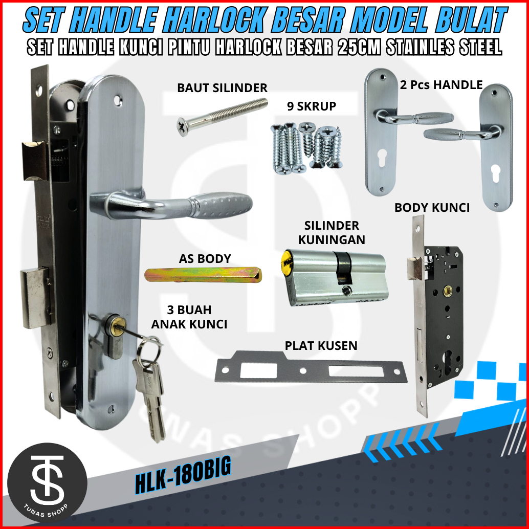 Set Handle Kunci Pintu Harlock Besar 25cm Model Bulat Handle Stainless Steel Kuat Anti Karat Elegan Minimalis Hlk-180big