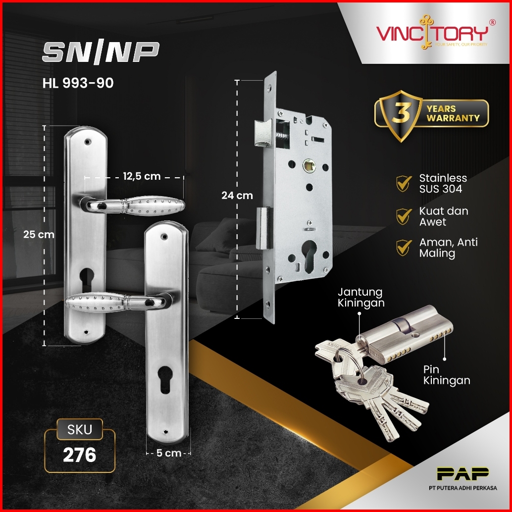 Slot Kunci Handle Handel Hendel Pintu Rumah Set Besar Large Vincitory Hl 90 Garansi 3 Tahun