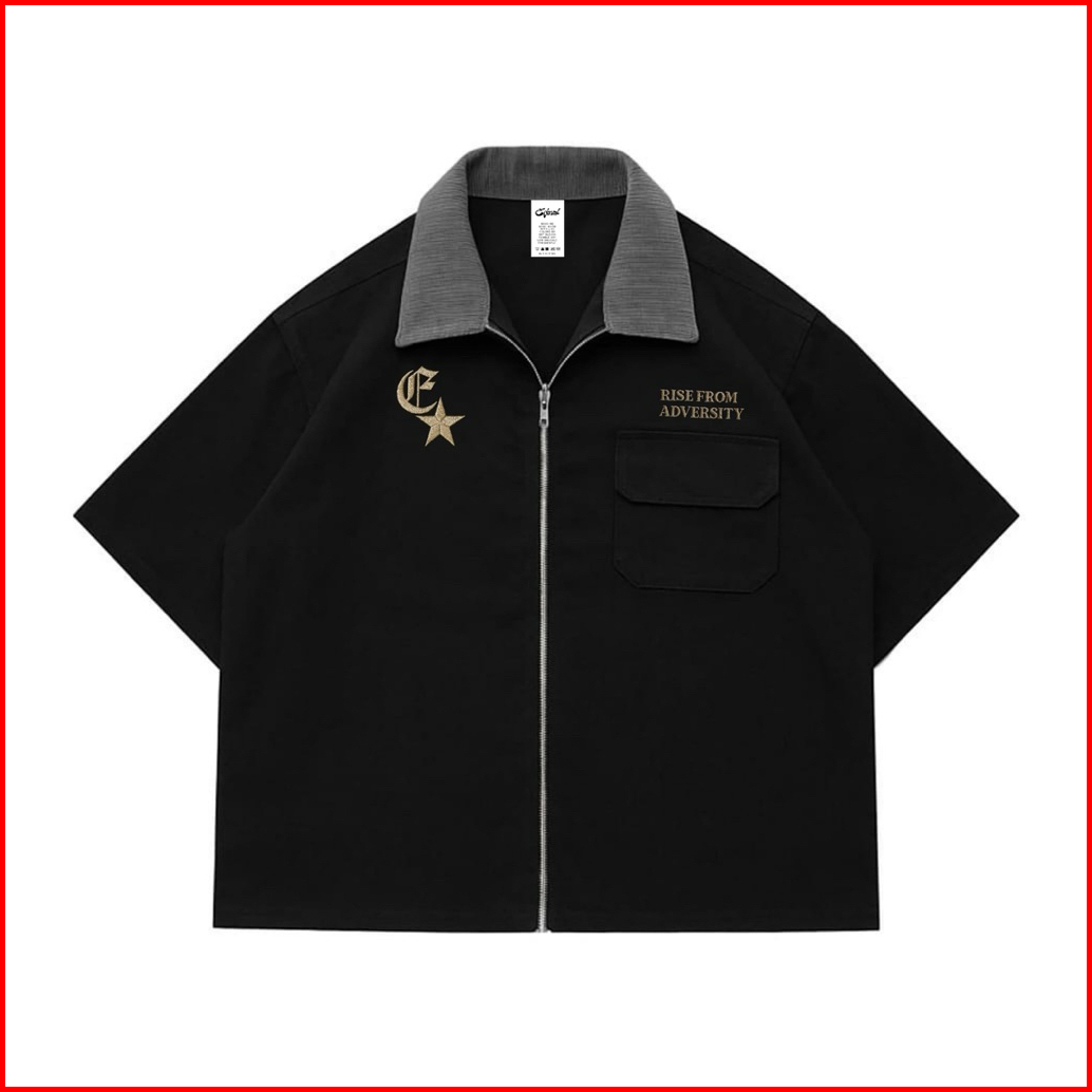 Edinal Kemeja Workshirt Zipper Black Boxy Do Not Be