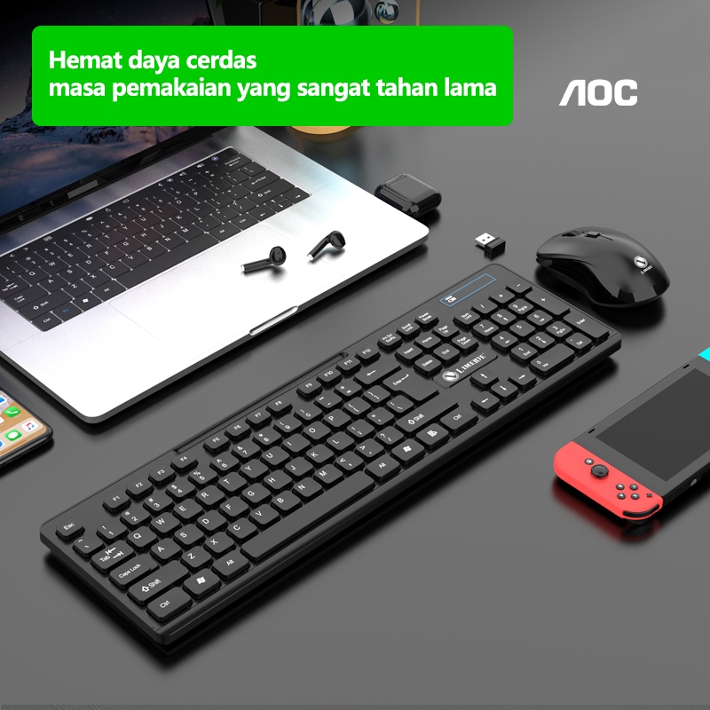 Portable Wireless Set Combo Keyboard dan Mouse Tanpa Kabel Tipe W100 Original Keyboard untuk PC Desktop dan Laptop