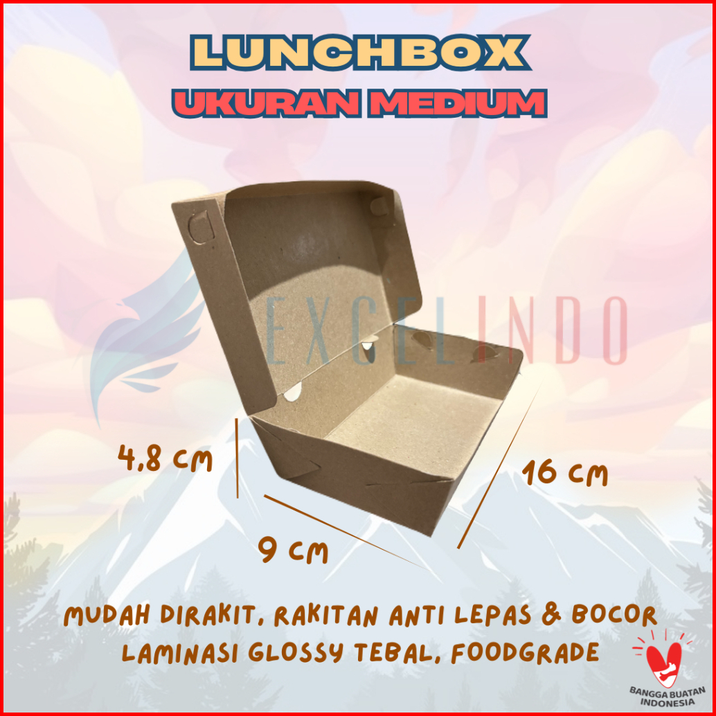 1 Dus Isi 500 Pcs Excelindo Lunchbox Kraft Coklat Laminasi Medium Large Foodgrade Anti Bocor