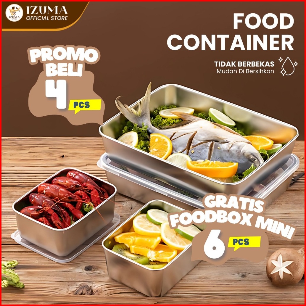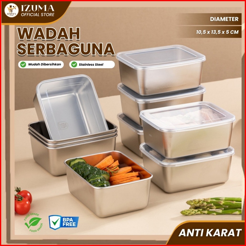 Izuma Food Box Bundling 10pcs Stainless Steel Wadah Makanan Microwave Food Grade Tutup