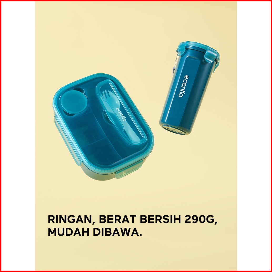 Ecentio Kotak Bekal Anti Tumpah Kotak Tempat Bekal 1200ml 500ml Lunch Box Set Free Sendok Kotak Saus Bpa Free