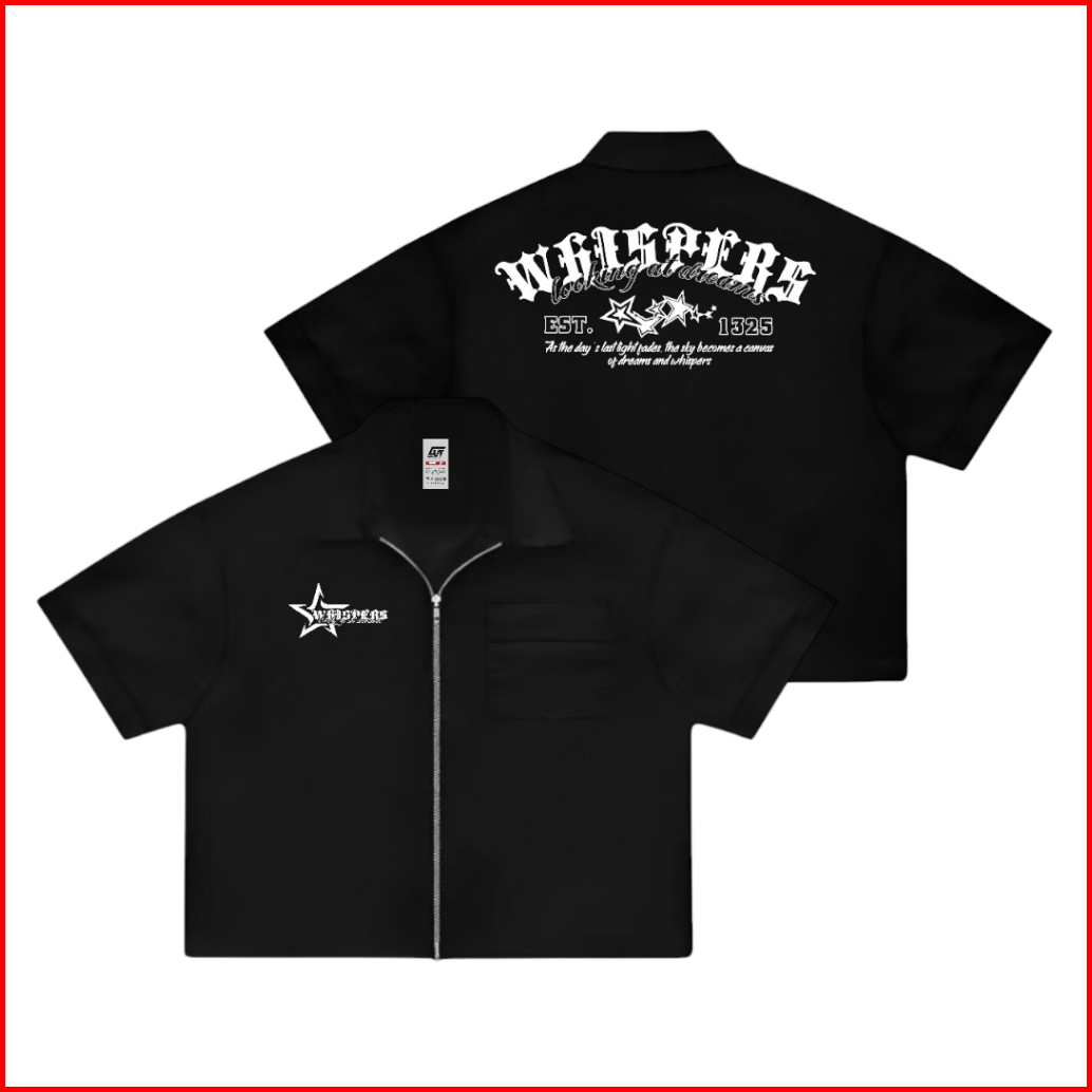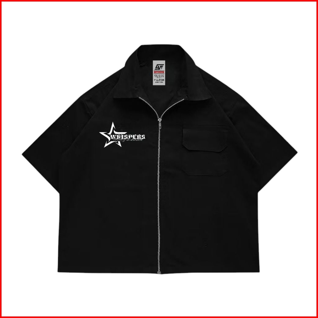 Giovent Work Shirt Zipper Boxy Kemeja Kerja Casual Black Whispers