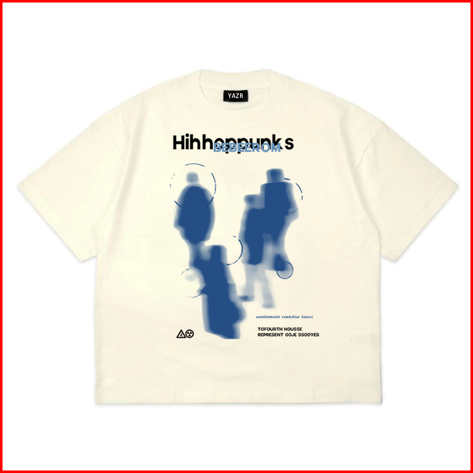 Yazr Kaos Boxy Oversized Hihhoppunks Blurred Portrait T-shirt Putih Cotton Combed 24s