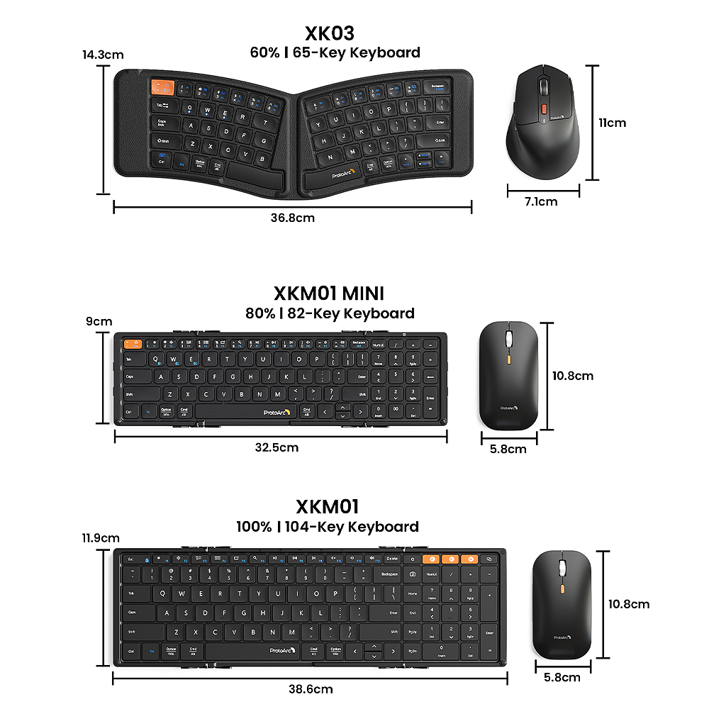 ProtoArc XKM01 Foldable Keyboard Lipat and Mouse Wireless 2.4G+Dual Bluetooth Rechargeable with Hard Portable Case - Garansi 2 Tahun