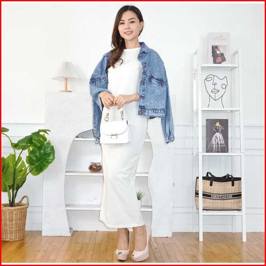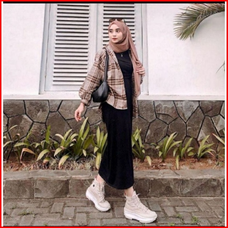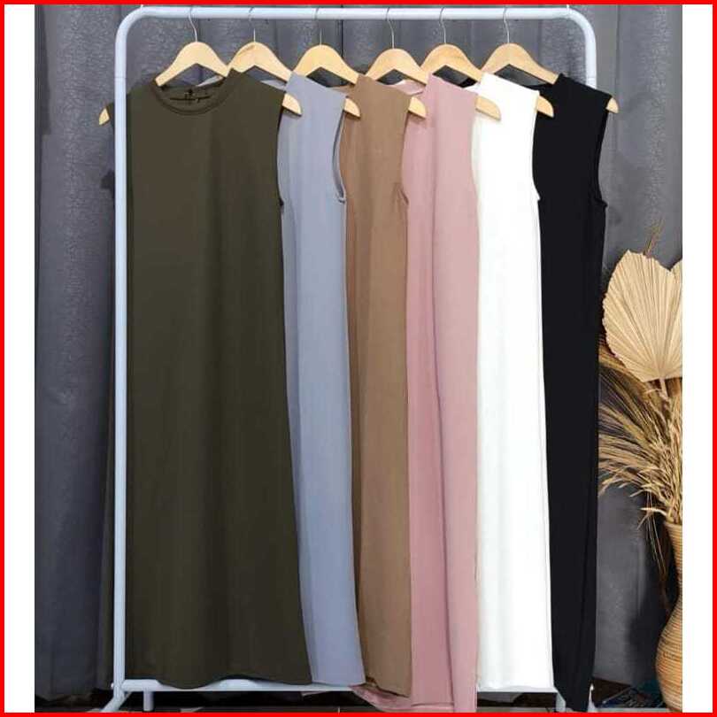 Inner Knit Dress Wanita Casual Tanpa Lengan Premium Melar Stretch Tebal Long Dress Inner Wanita