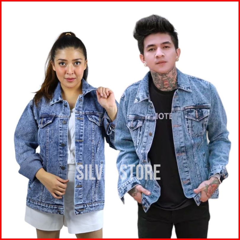 Jaket Denim Pria Dan Wanita Tebal Oversize
