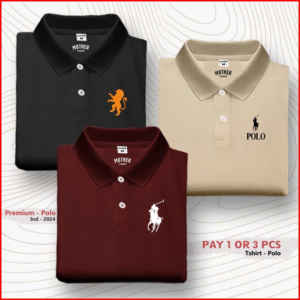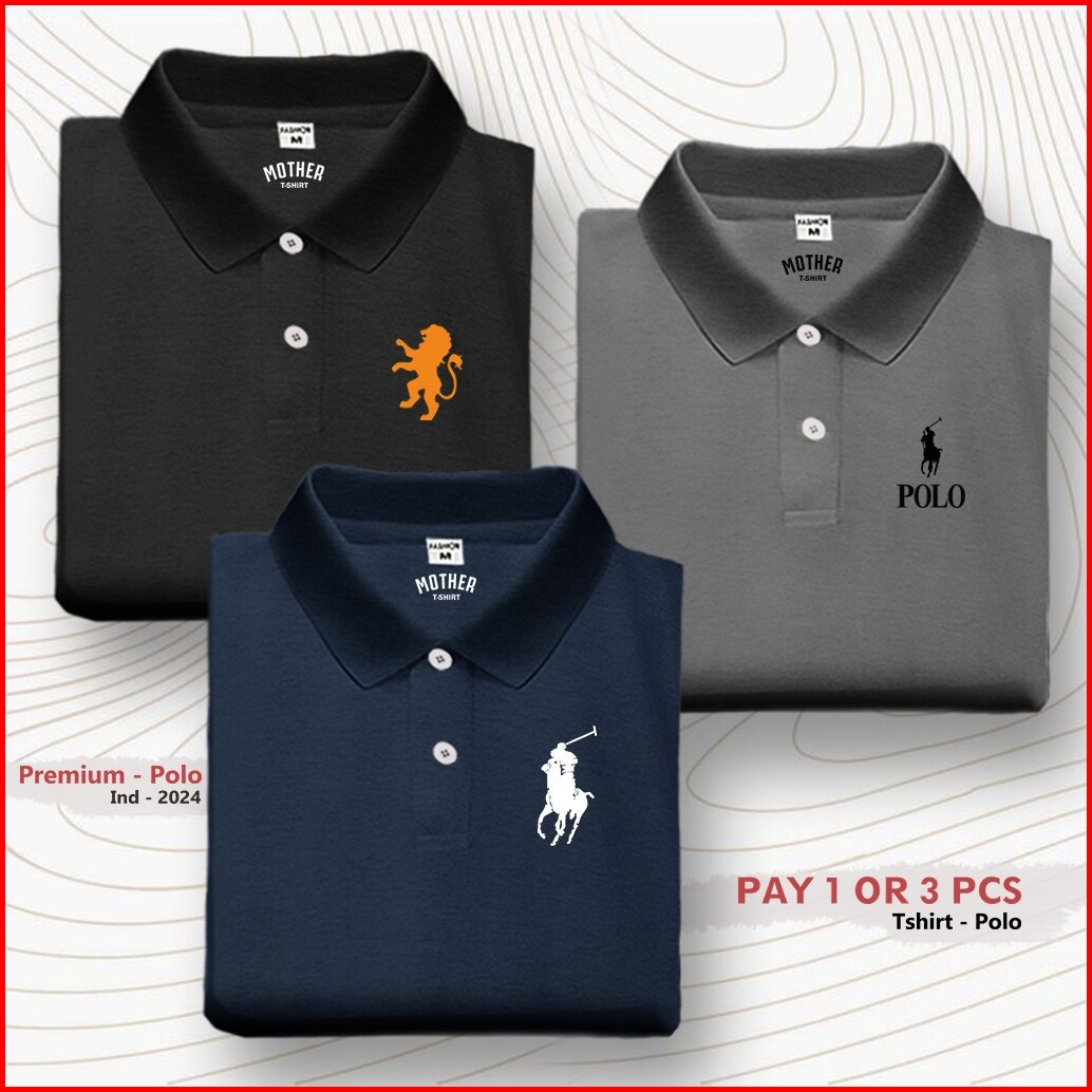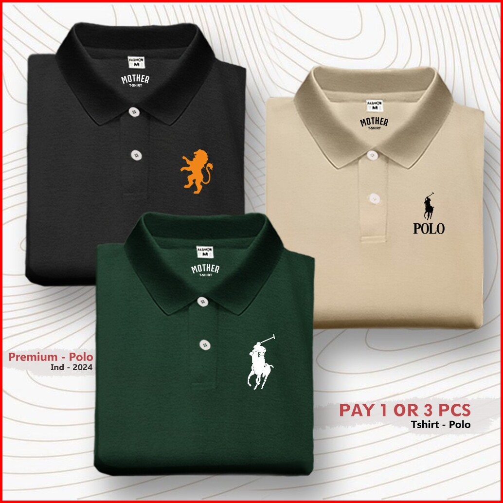 Paket 3 Pc Kaos T-shirt Polo Kerah Wangki Logo Girdano Polo Rlph Distro Premium Sablon Dtf