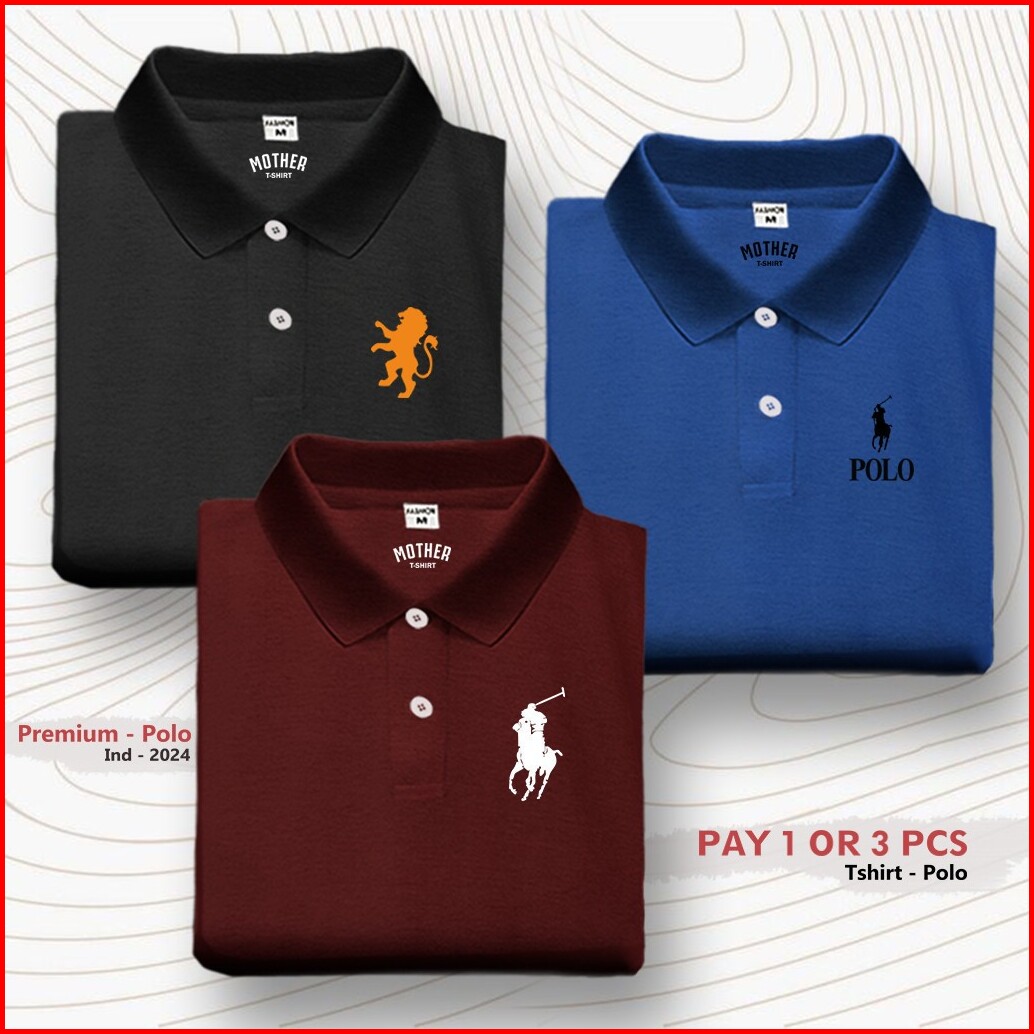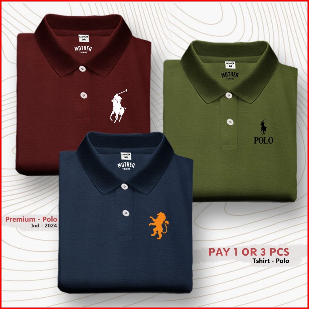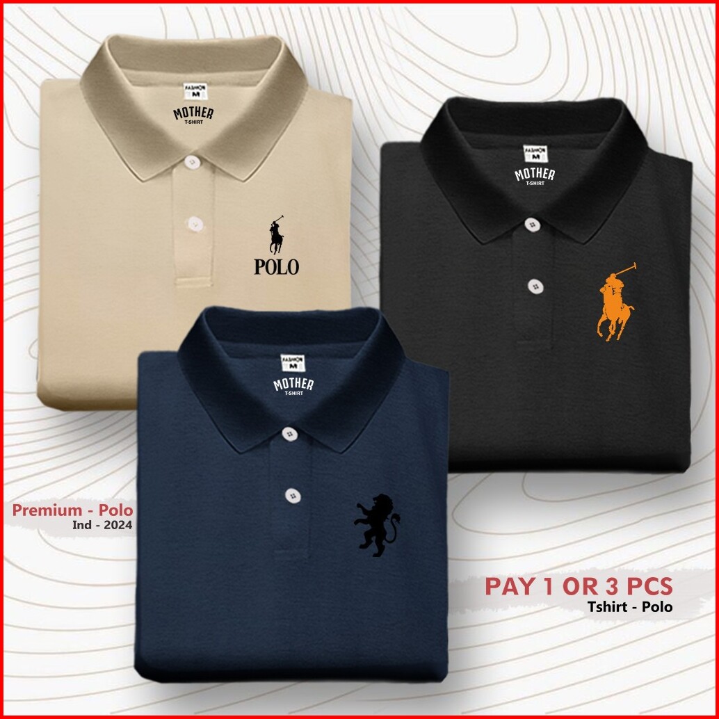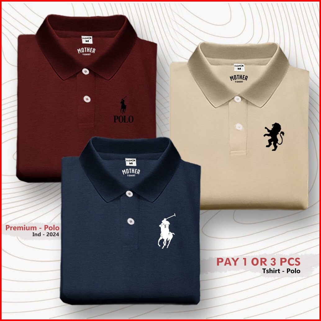 Paket 3 Pc Kaos T-shirt Polo Kerah Wangki Logo Girdano Polo Rlph Distro Premium Sablon Dtf
