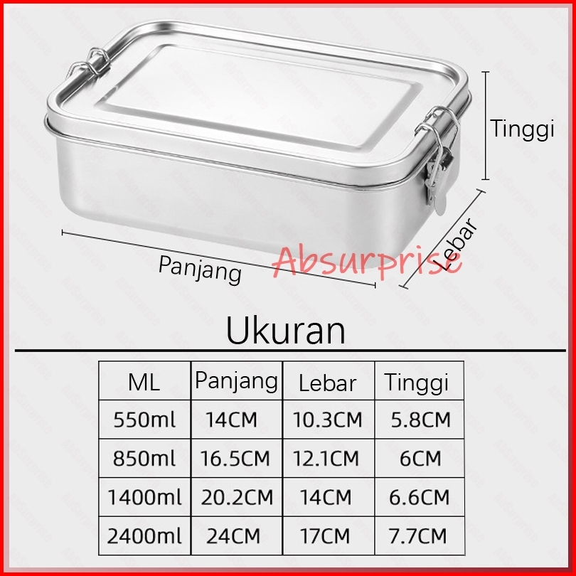 304 Stainless Steel 850ml Lunch Box Premium Anti Tumpah Anti Rembes Premium Kotak Makan Kotak Kontainer Penyimpanan Kulk