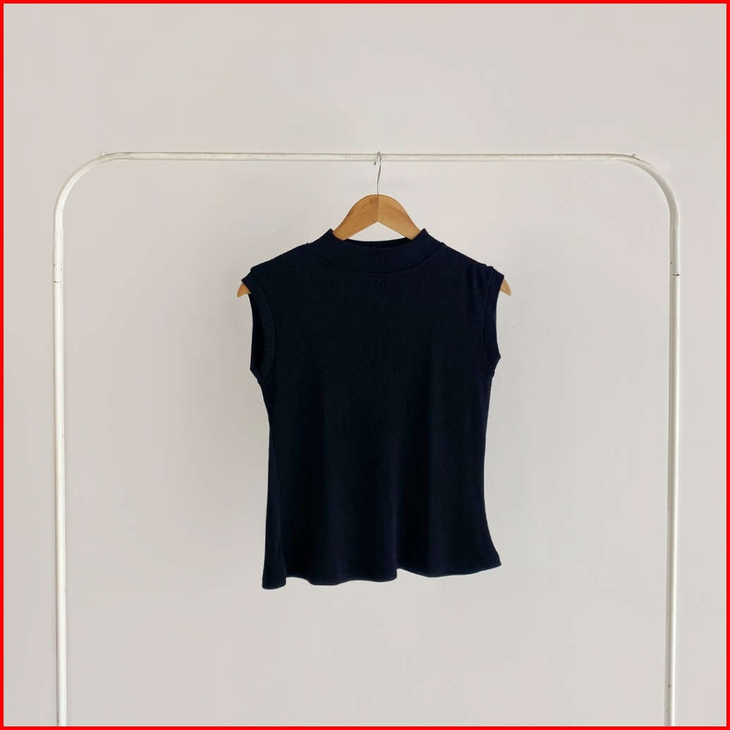 Yeppuoutfit - Aeri Manset Turtleneck Manset Tanpa Lengan Basic Rib Polos Inner Nyaman Casual