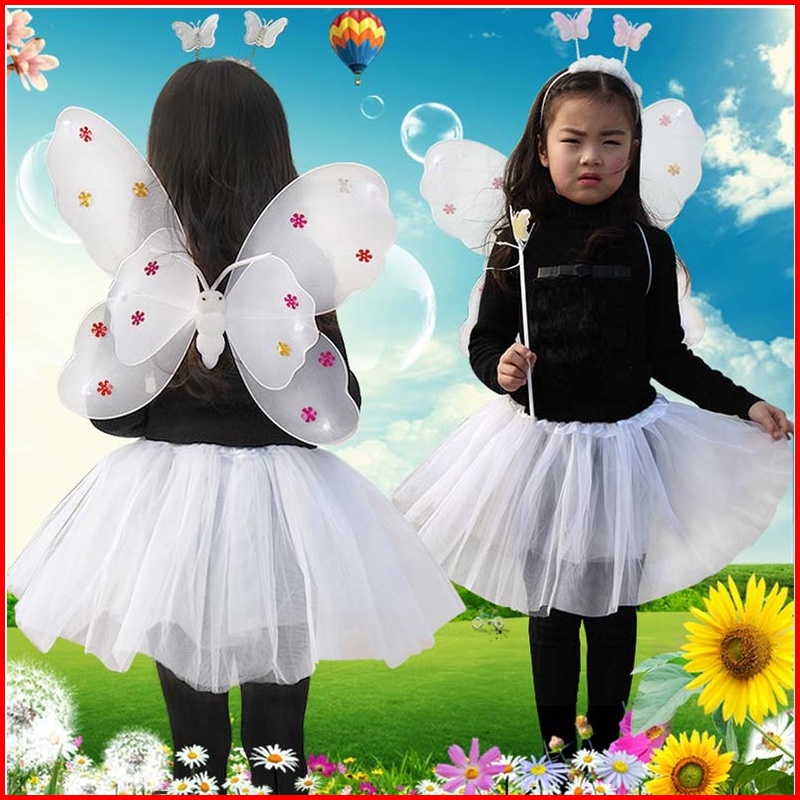 Sayap Peri Kupu-kupu Bando Tongkat Led Non Led Butterfly Costume Halloween Kostum Halowen Anak Cewek Perempuan