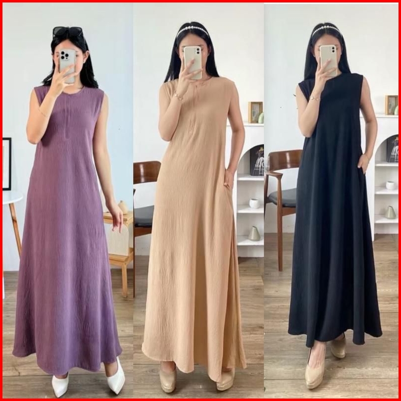 Inner Dress Tanpa Lengan Singlet Inner Dress Gamis Busui Daleman Kutungan Crinkle Airflow Premium