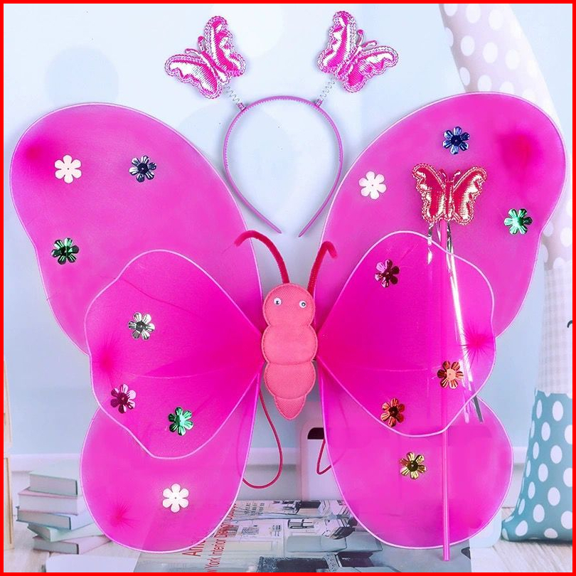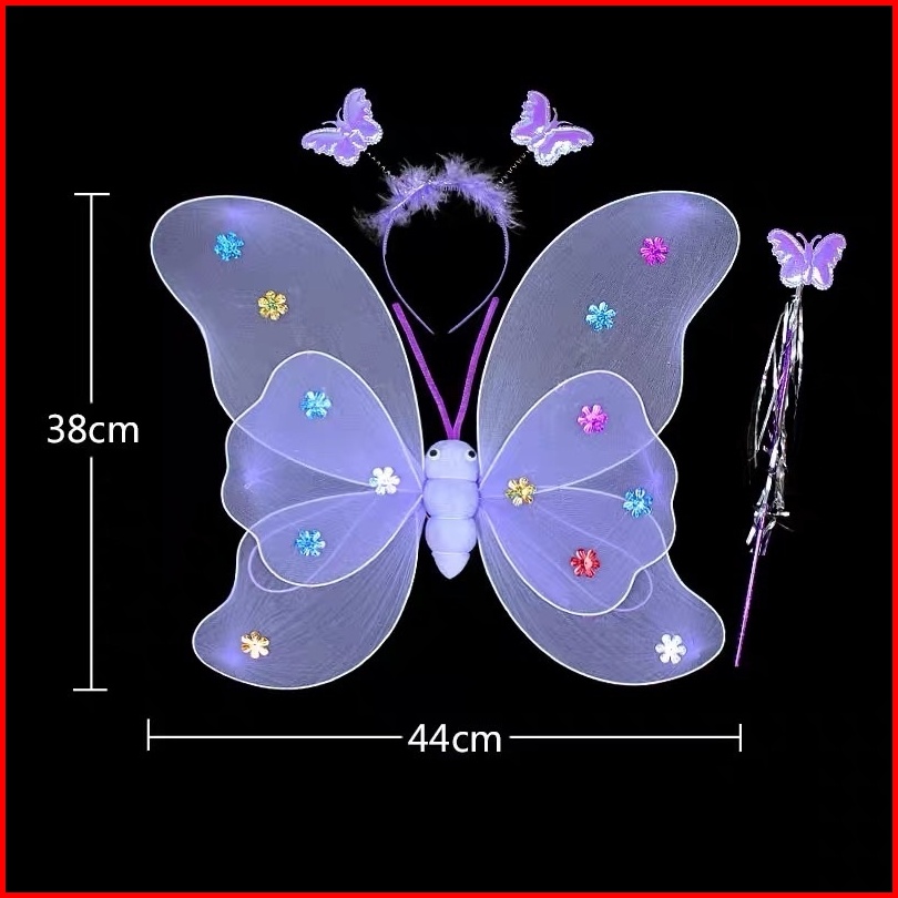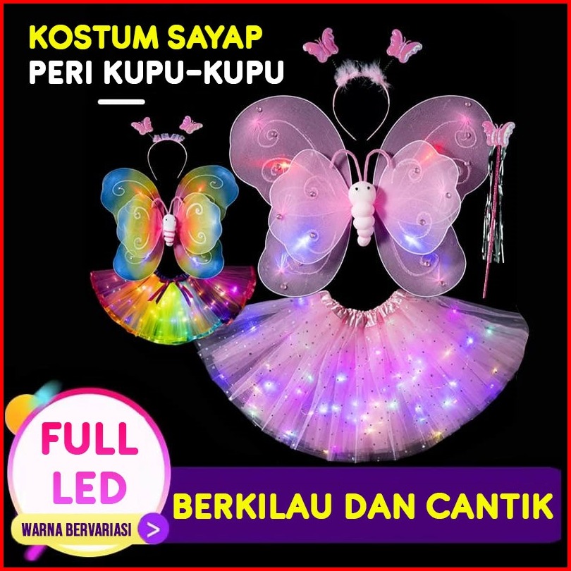 Set Lengkap Kostum Sayap Peri Kupu Kupu Anak Bercahaya Led Sayap Kupu-kupu Rok Bando Tongkat