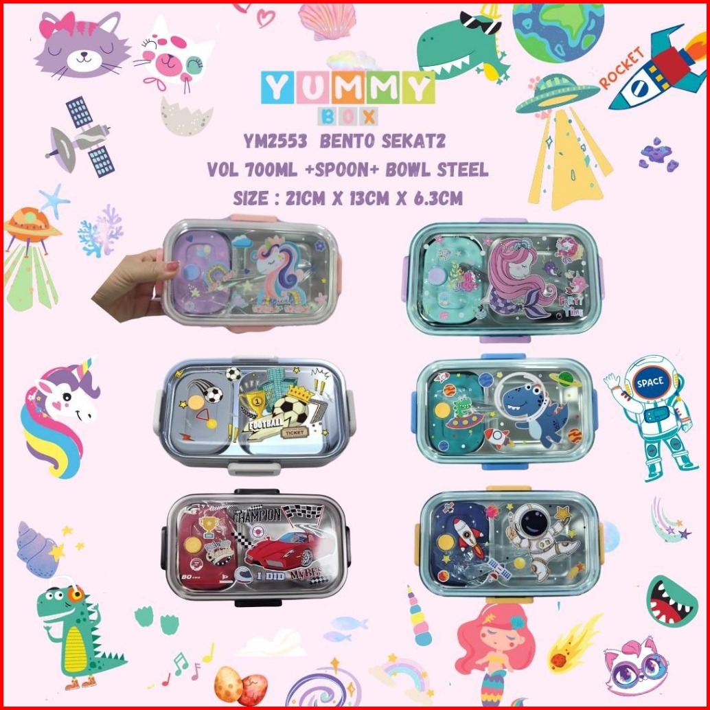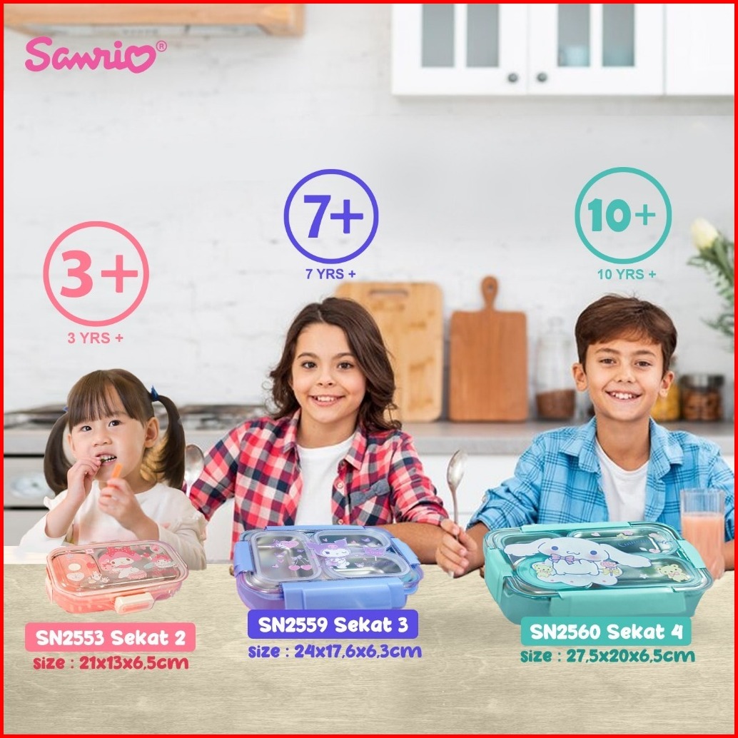 Joelhouse 2 Sekat Stainless Yummy Bento Lunchbox Stainless Kotak Makan Box Bento Kotak Bento Stainless Sanrio Kuromi Mel