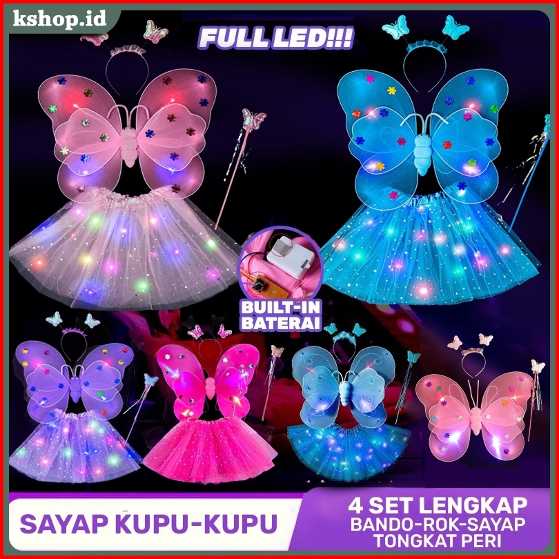 Kostum Bercahaya Sayap Peri Kupu Kupu Anak Set Paket Sayap Kupu-kupu Rok Bando Tongkat