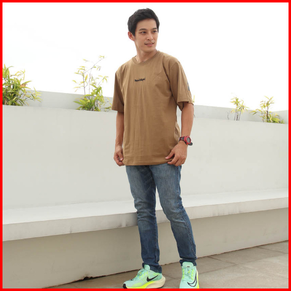 Kaos Oversize Distro Korea Style Point 8 Katun Combed Navy Caramel M-xl Model 10080