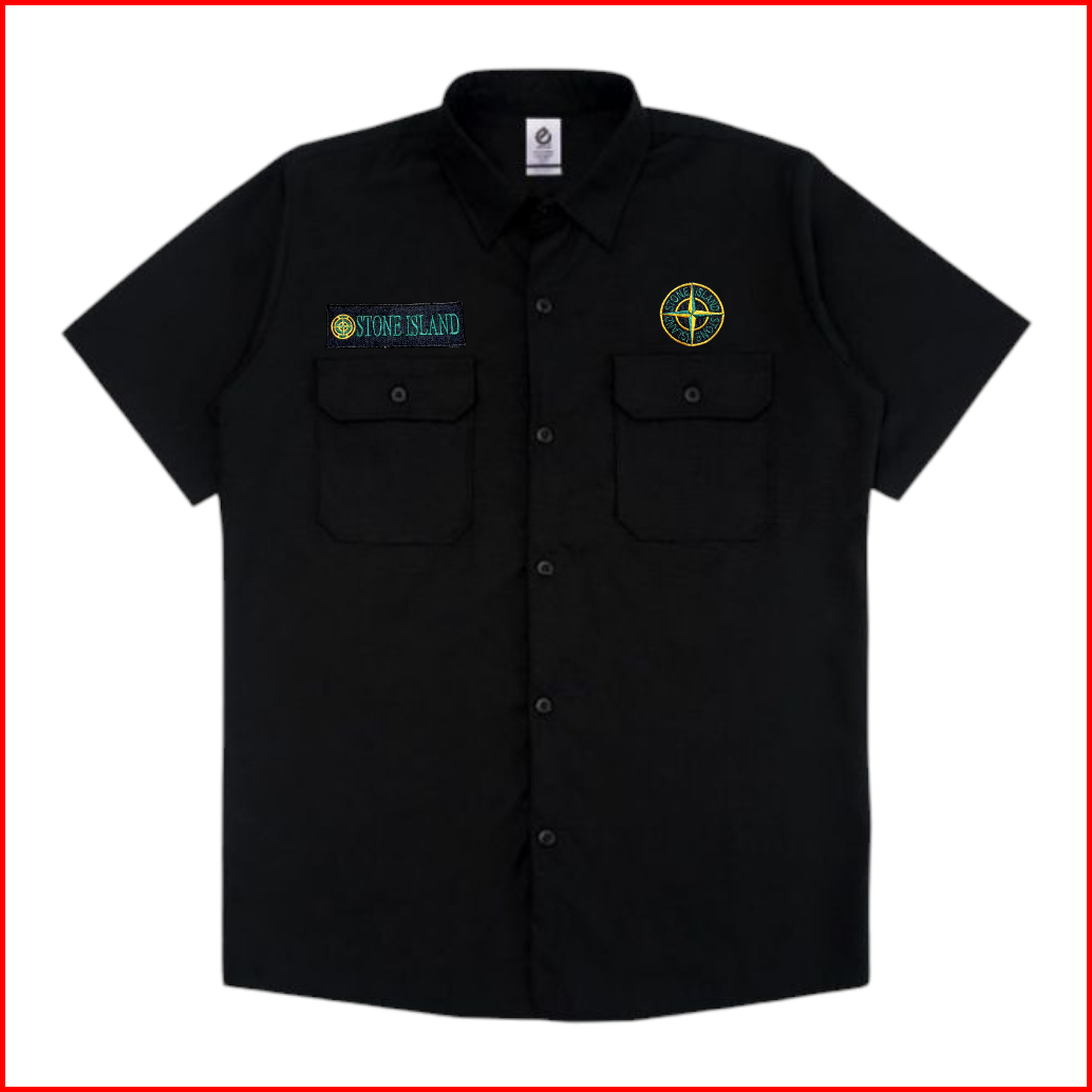 Kemeja Pria Workshirt Top Man Lengan Pendek Casual Bordir Skena Hitz Tebal Kerja