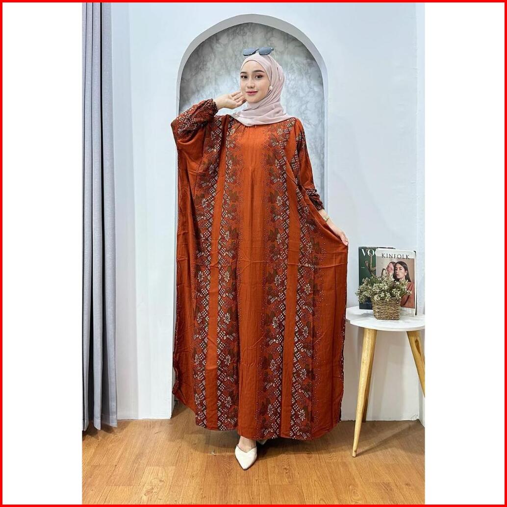 Kaftan Lebaran 2025 Mewah Batik Sogan 180 Cm Busui Muslim