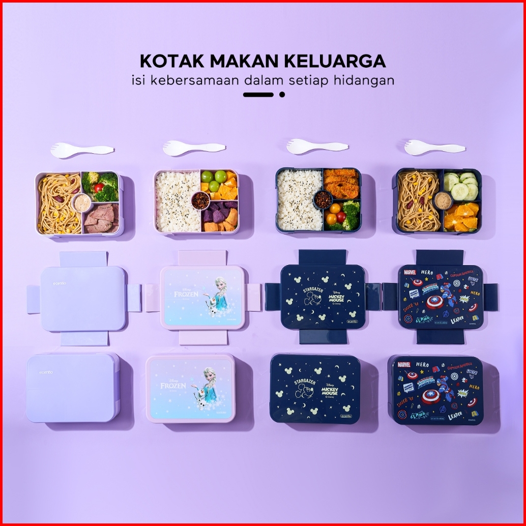Ecentio Kotak Makan Plastik Lunch Box 3 Kompartemen Perlindungan Anti Bocor Desain Isolasi Tertutup Warna Ungu 950ml