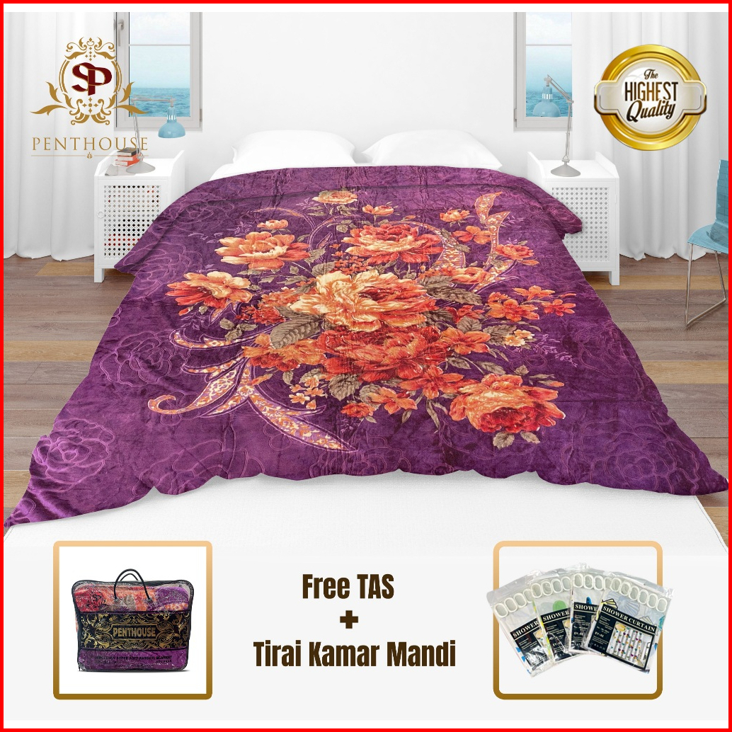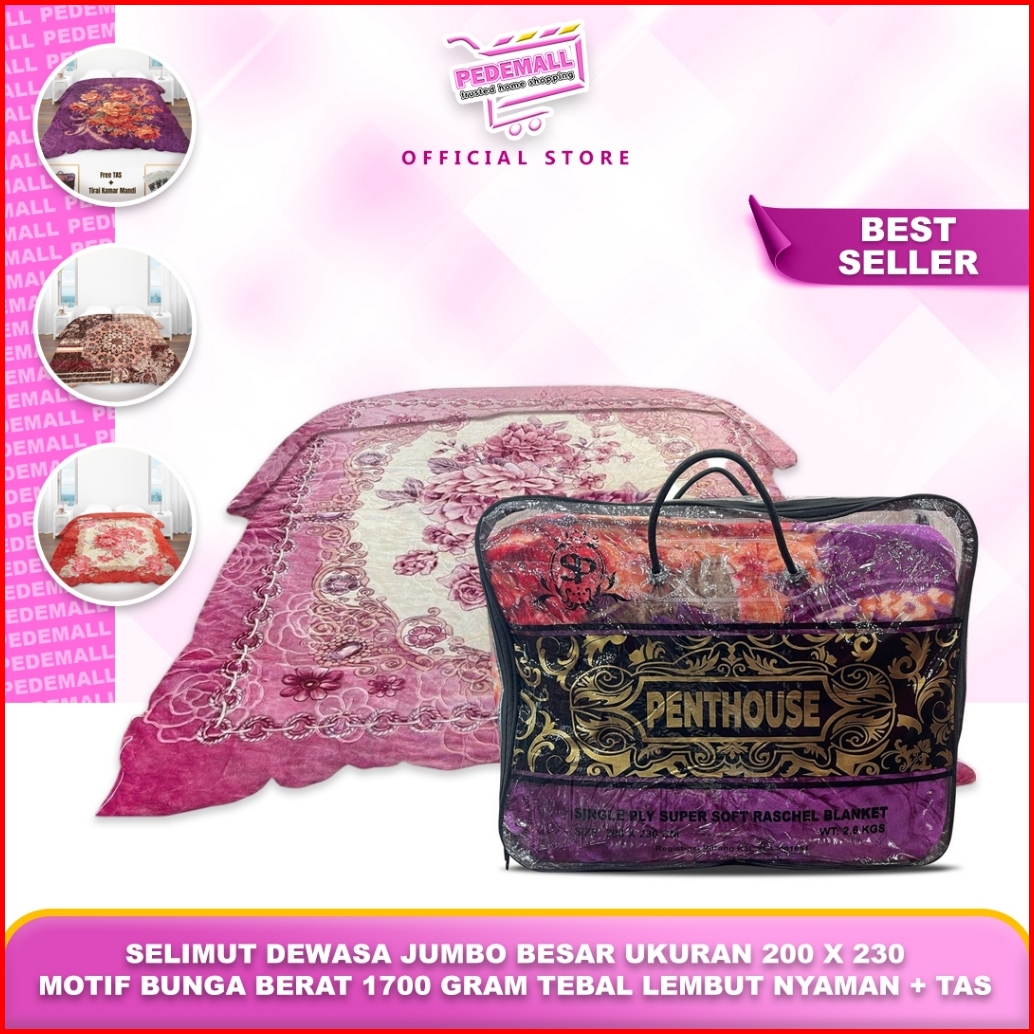 Selimut Dewasa Jumbo Besar Ukuran 200 X 230 Motif Bunga Berat 1700 Gram Tebal Lembut Nyaman Tas