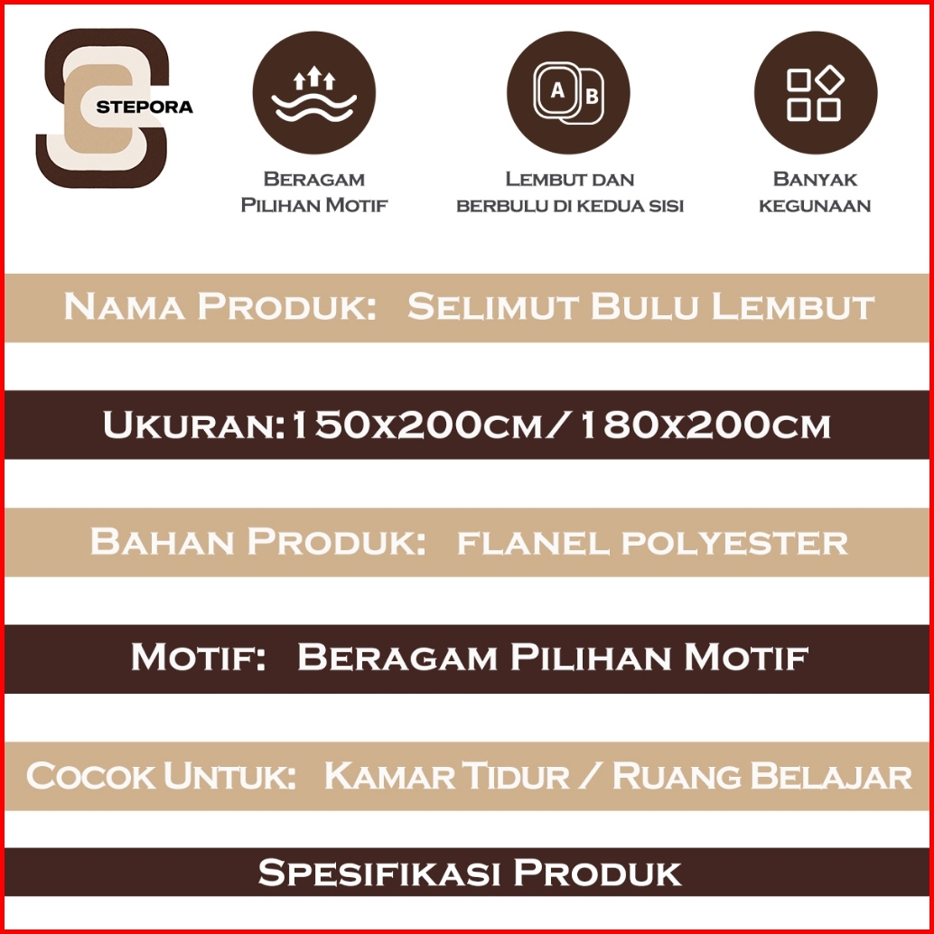 Selimut Bulu Lembut Bahan Flanel Polyester Uk 150x200cm 180x200cm Motif Kekiniaan