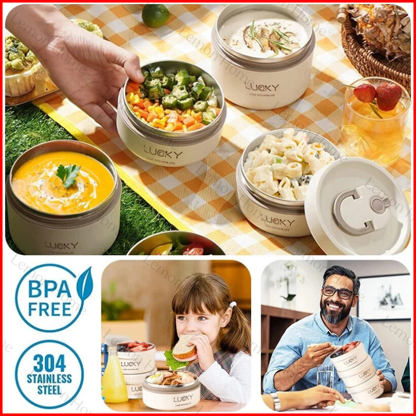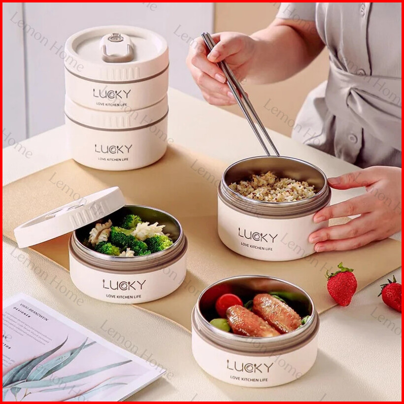 Lemon Home Garansi 1 Tahun Kotak Makan Lunch Box Siang Bento Portabel Tahan Bocor Gaya Jepang Lunch Box Round Stainless