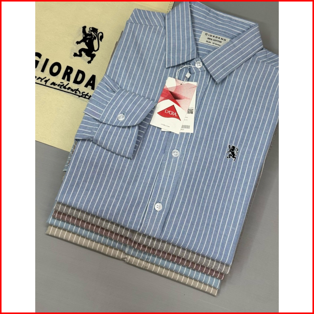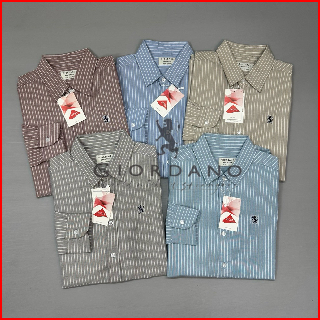 Kemeja Panjang Kerah Giordano Salur Oxford Premium - Kemeja Panjang Giordano Stripe Slimfit