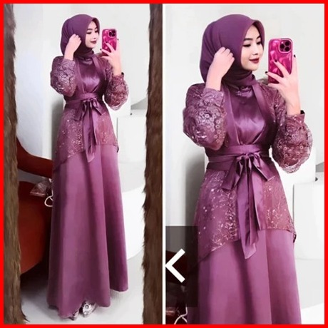 Veloxa Dress Satin Brukat Special Burgundy Mahogany Ld 120 Jumbo Inner Outer Gamis Bridesmaid Kondangn Busui Friendly