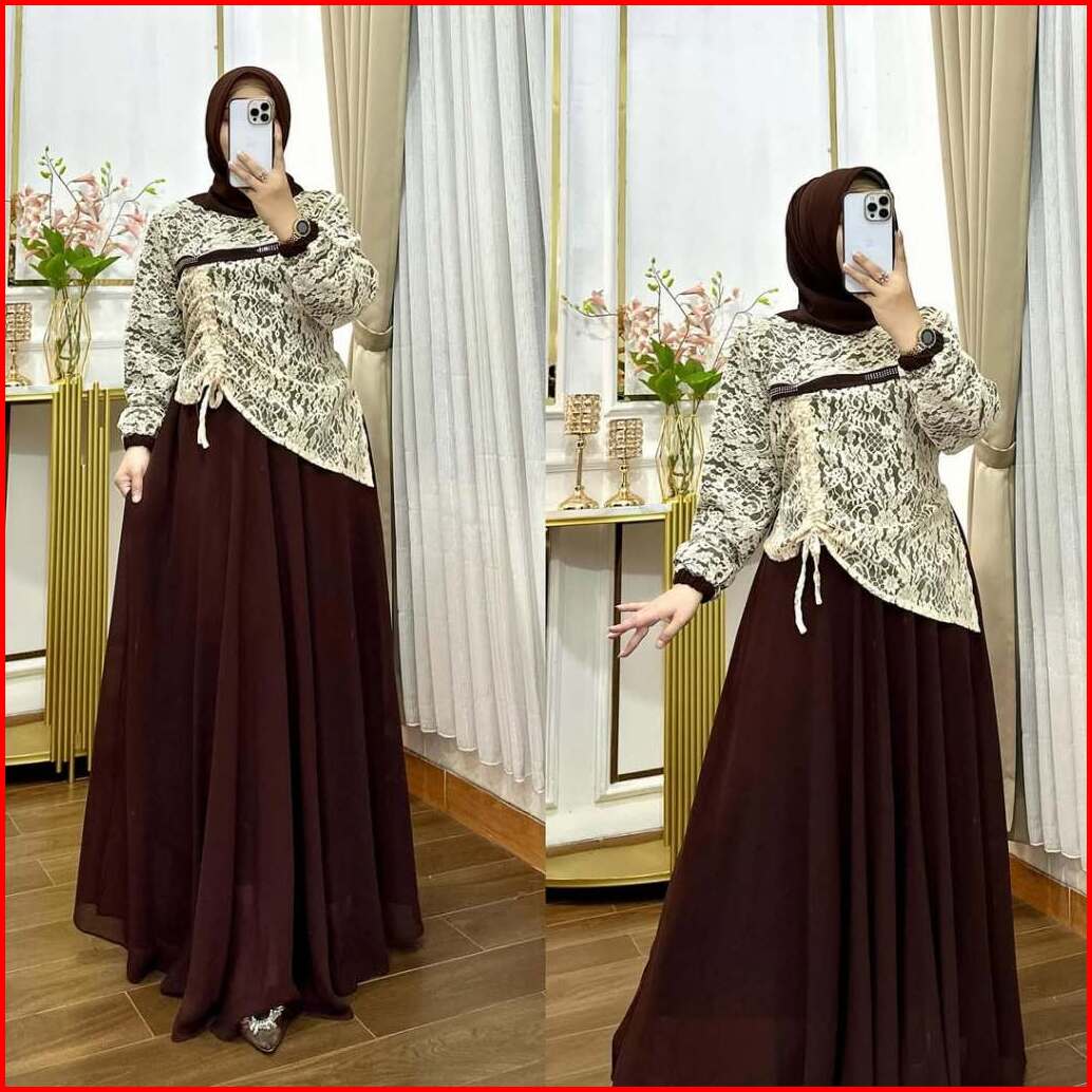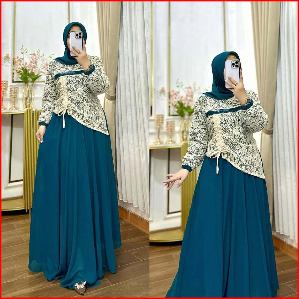 Aurelia Dress Ceruty Babydoll Mix Brukat Aplikasi Payet Swarovski Gamis Pesta Mewah Elegant 2026
