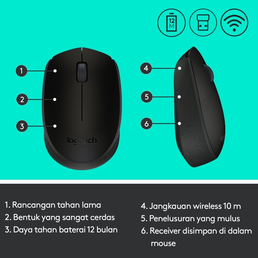 Mouse Wireless LOGITECH M170 M171 Original untuk Windows, Mac, ChromeOS Garansi 1 Tahun