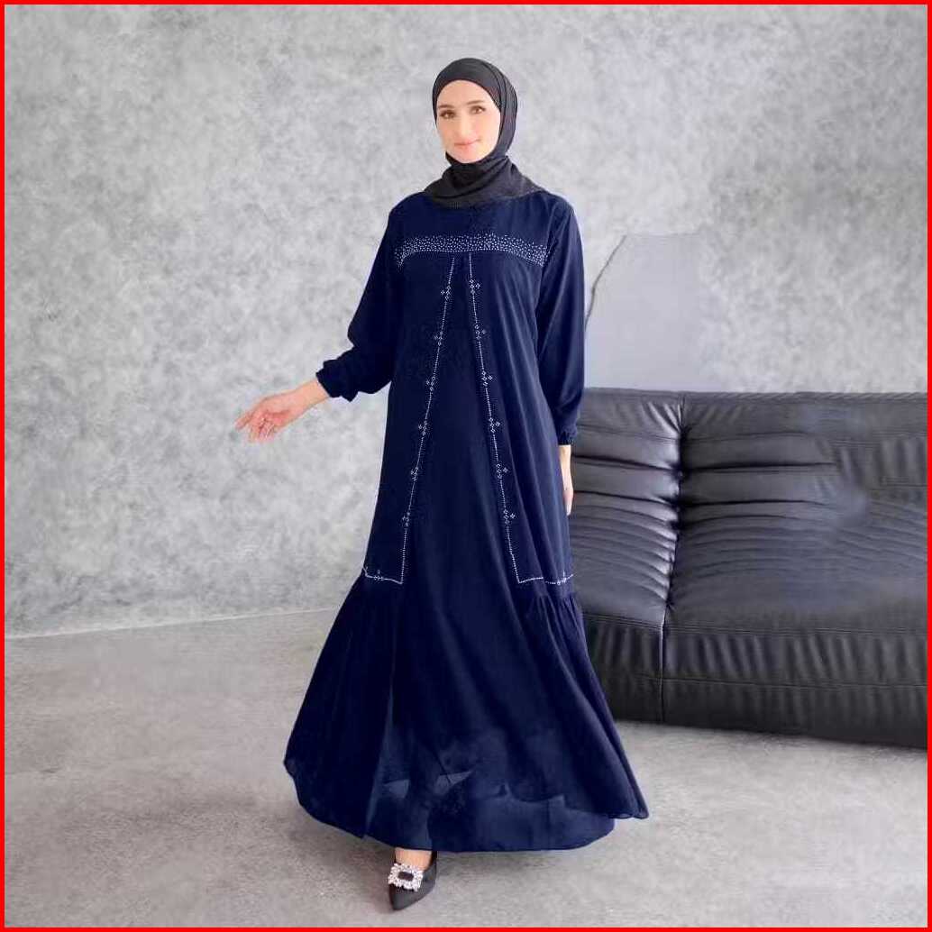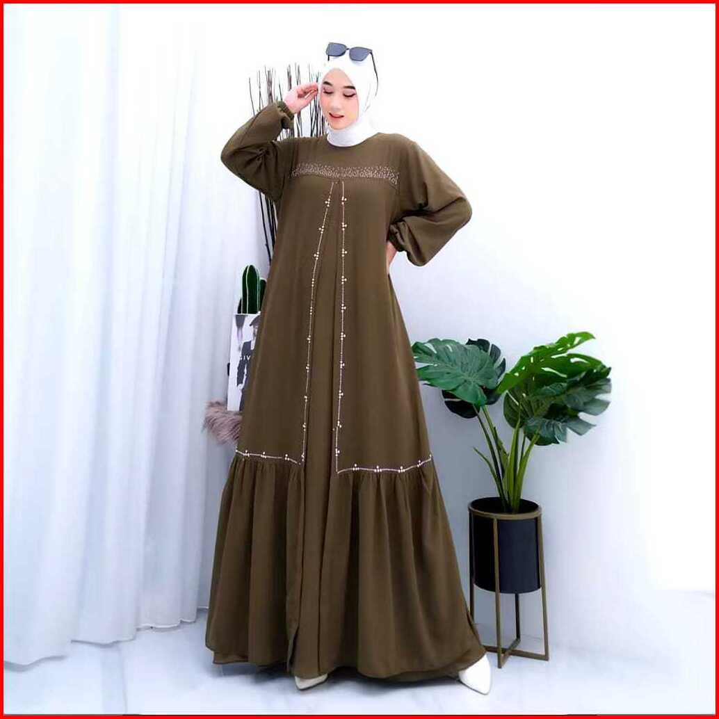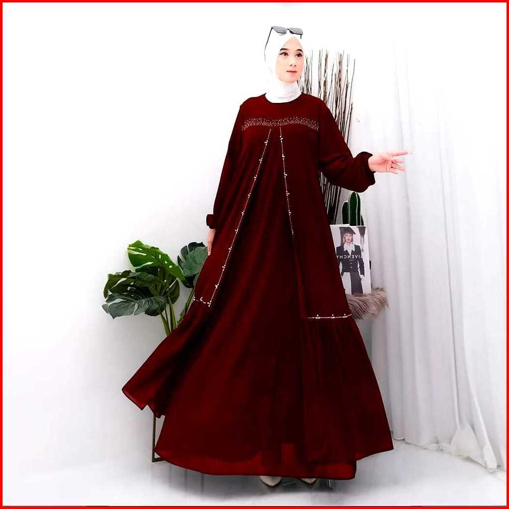 Larisss.id Promo Gamis Kondangan Terbaru Mewah Elegant Lovela Dress Muslim Crinkel Mix Sworaski