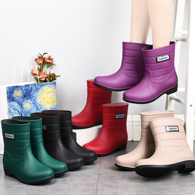 Sepatu Boots PVC Wanita Import Premium Bots Tahan Air Premium Quality Tabung Tengah Anti Selip Fashion Boot Terkini Kore