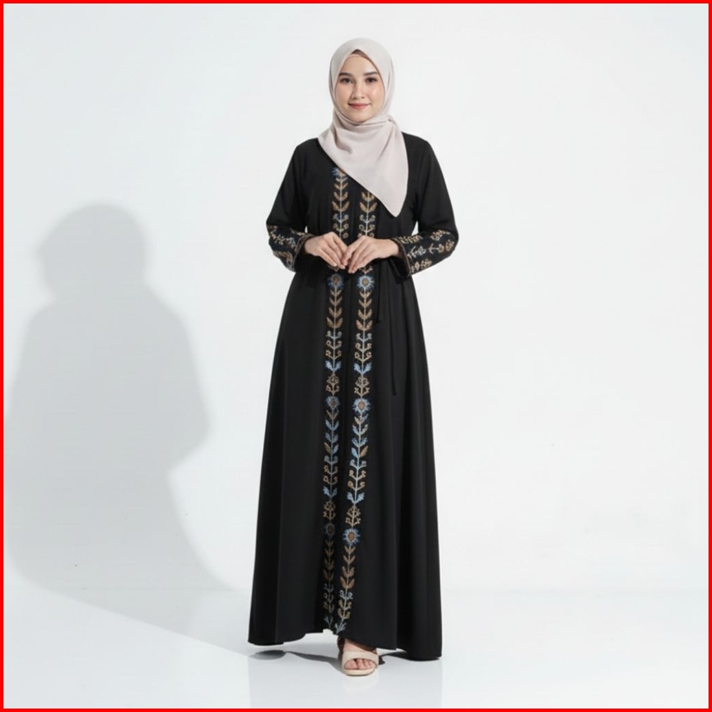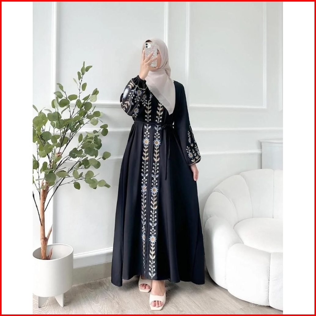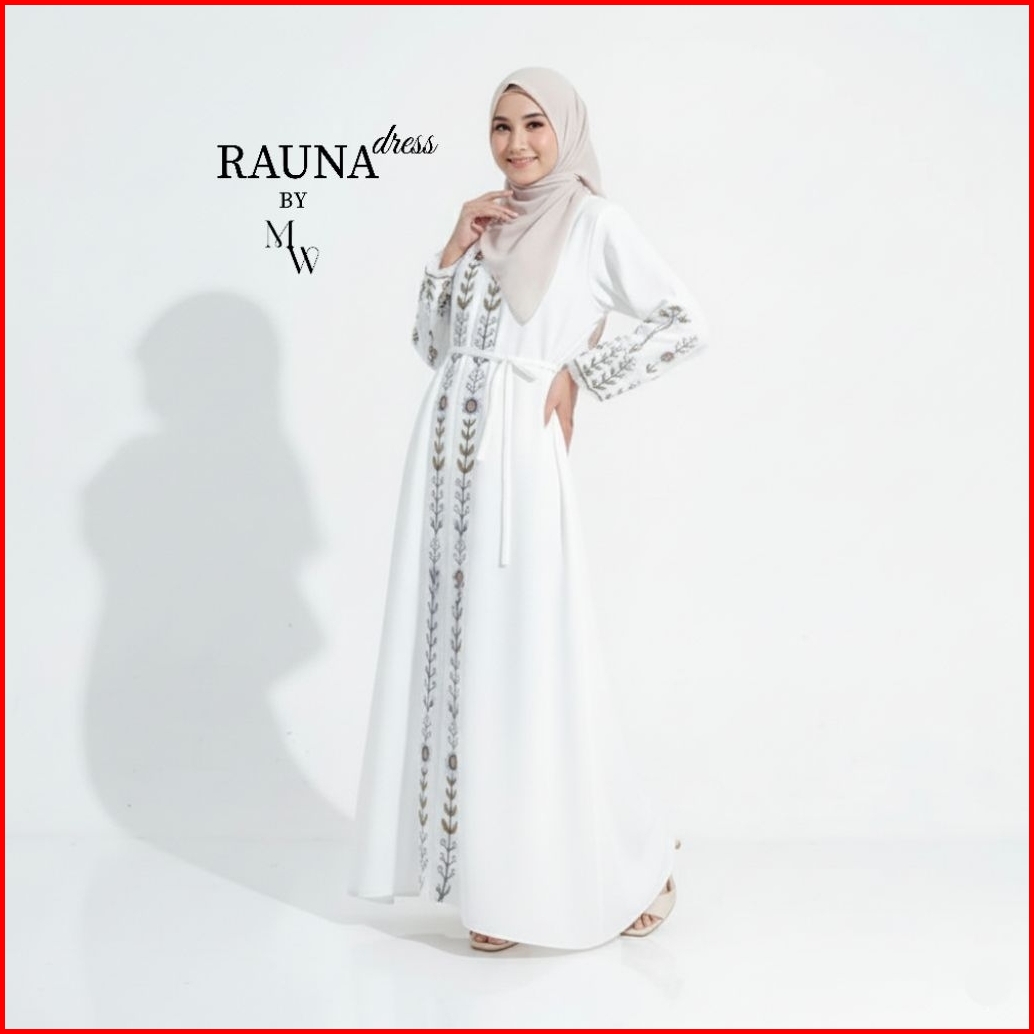 Rauna - Gamis Muslimah Pesta Cringkle Airflow Mix Bordir Mewah Kekinian Wudhu Friendly Busui Friendly