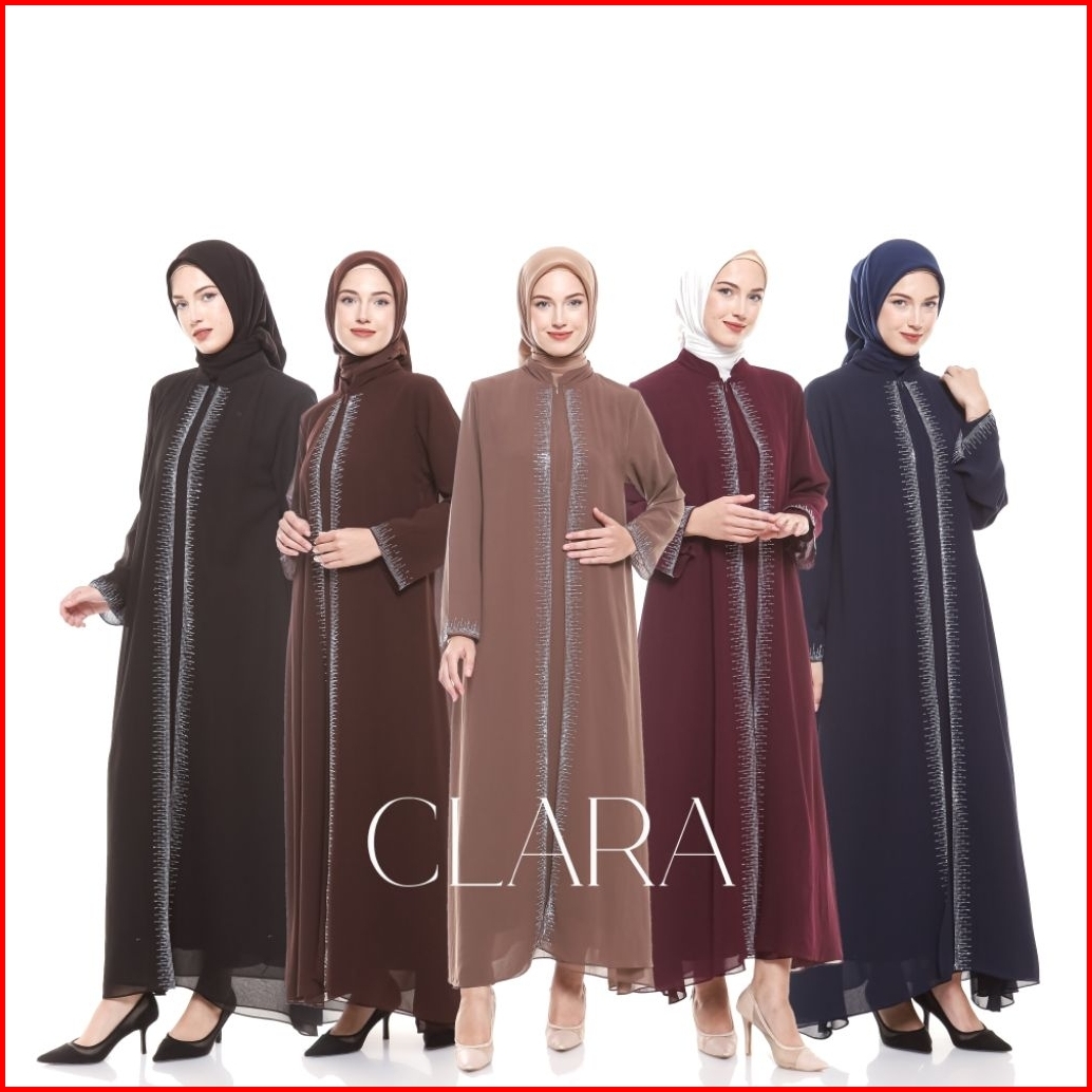 Clara - Abaya Ceruty Babydoll Mix Swarovski Mewah Gamis Outher Long Cardigan Pesta Syar I Busui Friendly