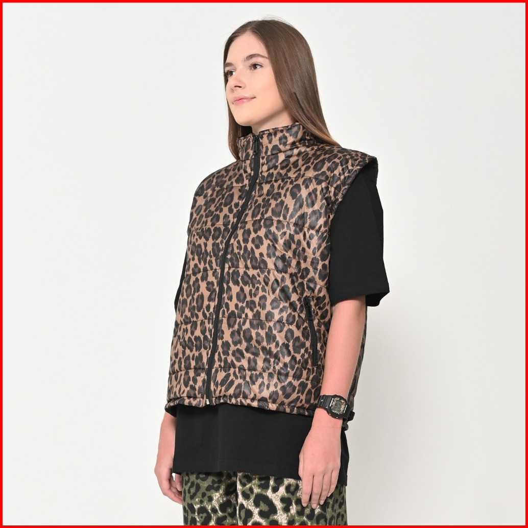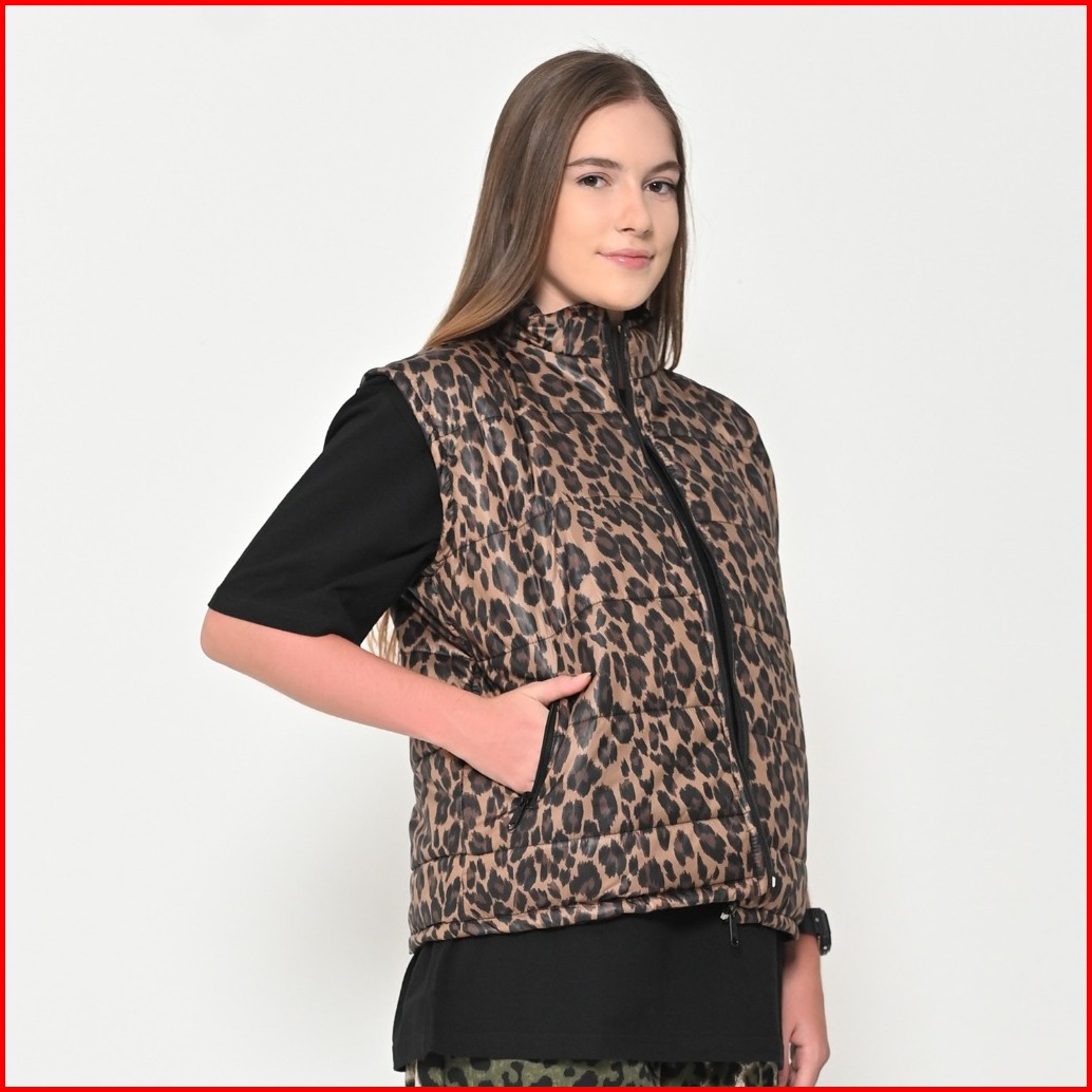 Puddinglane Vest Quilting Leopard Rompi Pria Wanita Davina