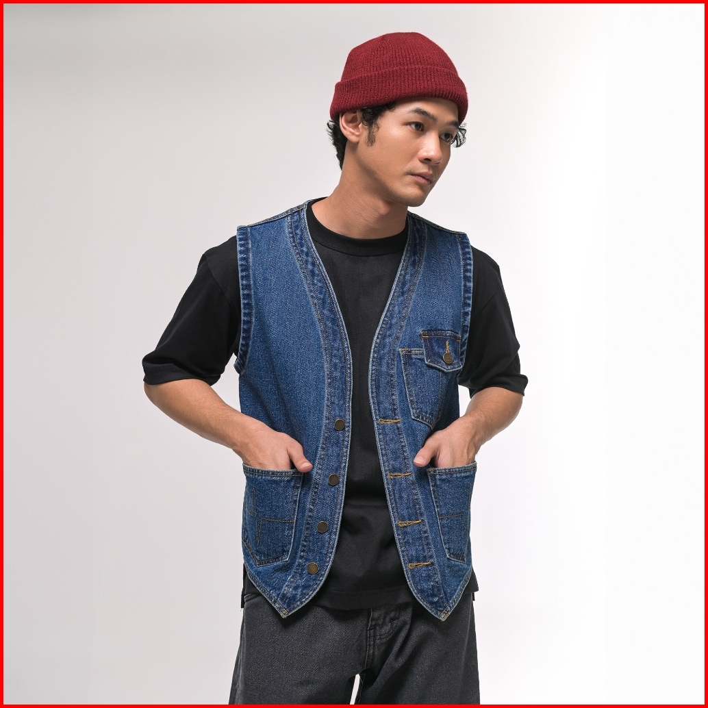 Jb - Vest Denim V-neck Bio Wash - Rompi Jeans Pria