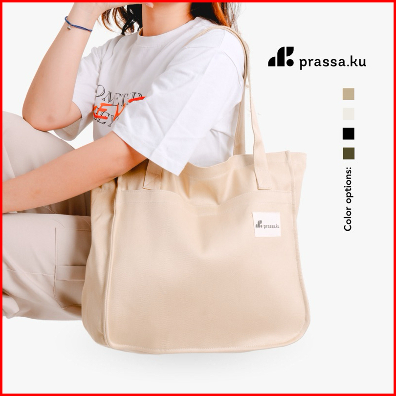 Prassa.ku Riku Bag - Zipper Oversized Totebag Pria Wanita Pocket Kantong Aesthetic Korea Jepang