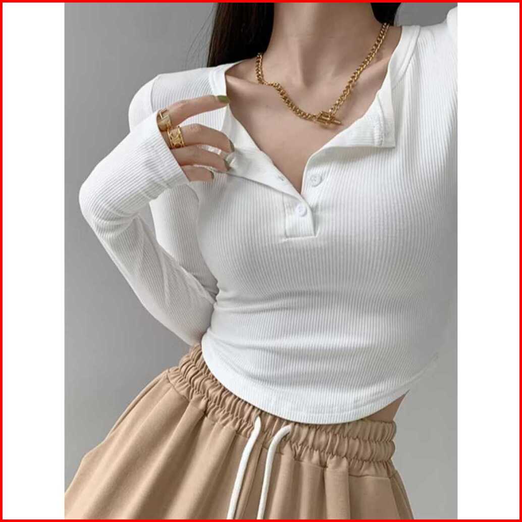 Termurah Ribben Henley Blouse Korean Scop Neck Rib Knit Wanita Korean Top Baju Knit Wanita Lengan Panjang Basic Long Sle