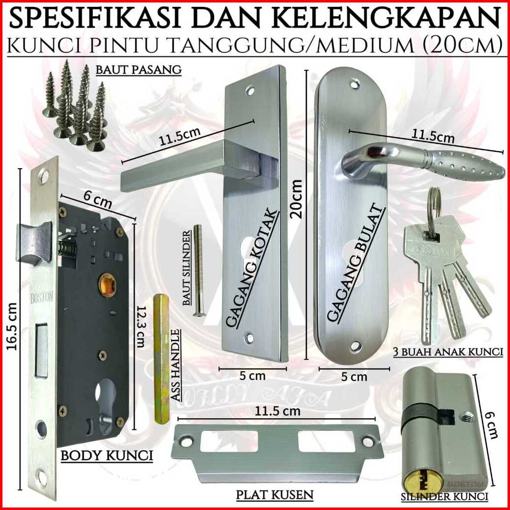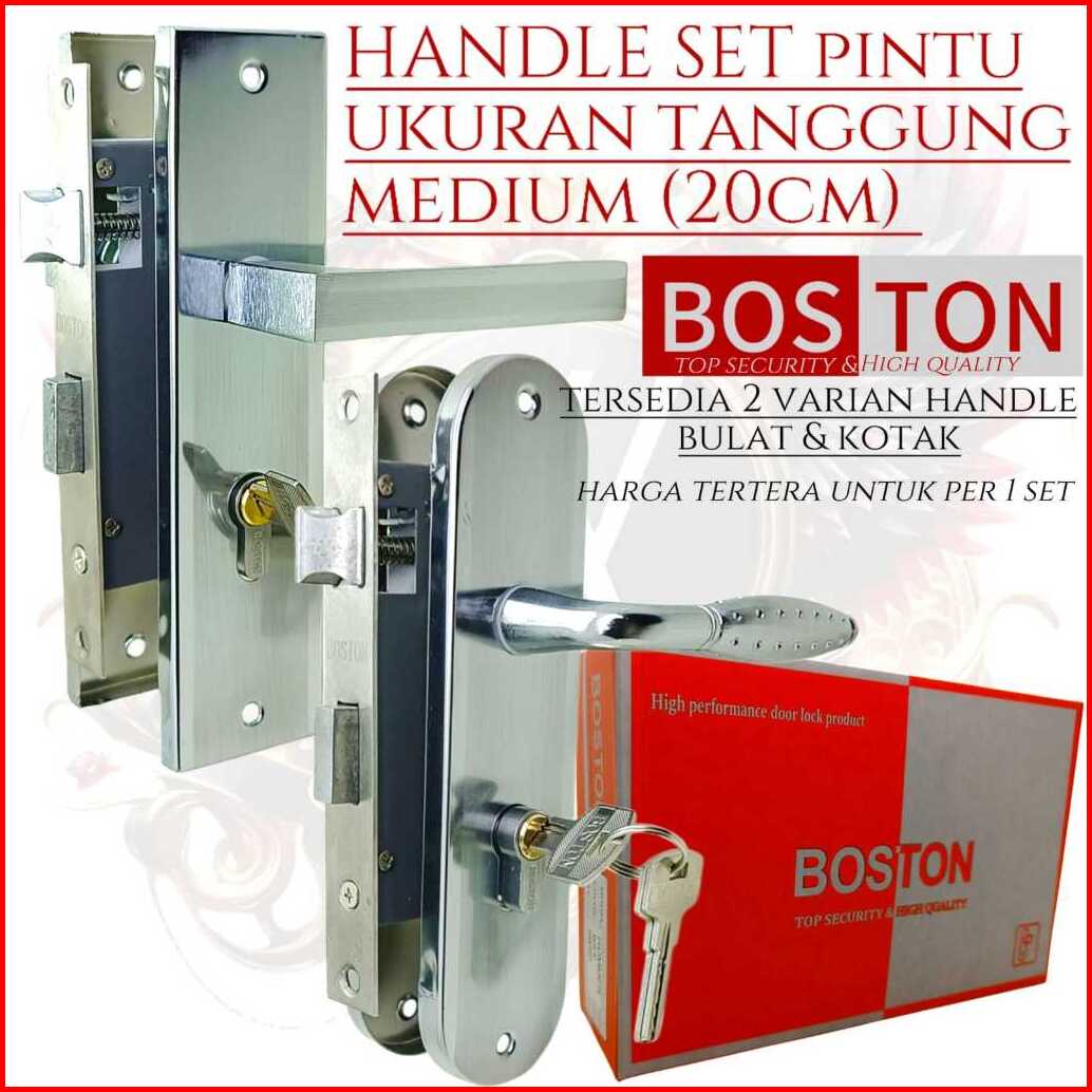Kunci Pintu Tanggung 20cm Boston Gagang Bulat Dan Kotak Silver Chrome