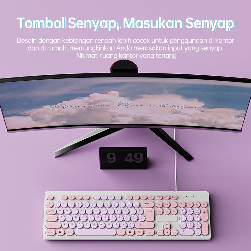 YLV Keyboard & Mouse Gaming Set Kabel USB 104 Keys Full Size Tuts Bulat Macarons for PC Laptop