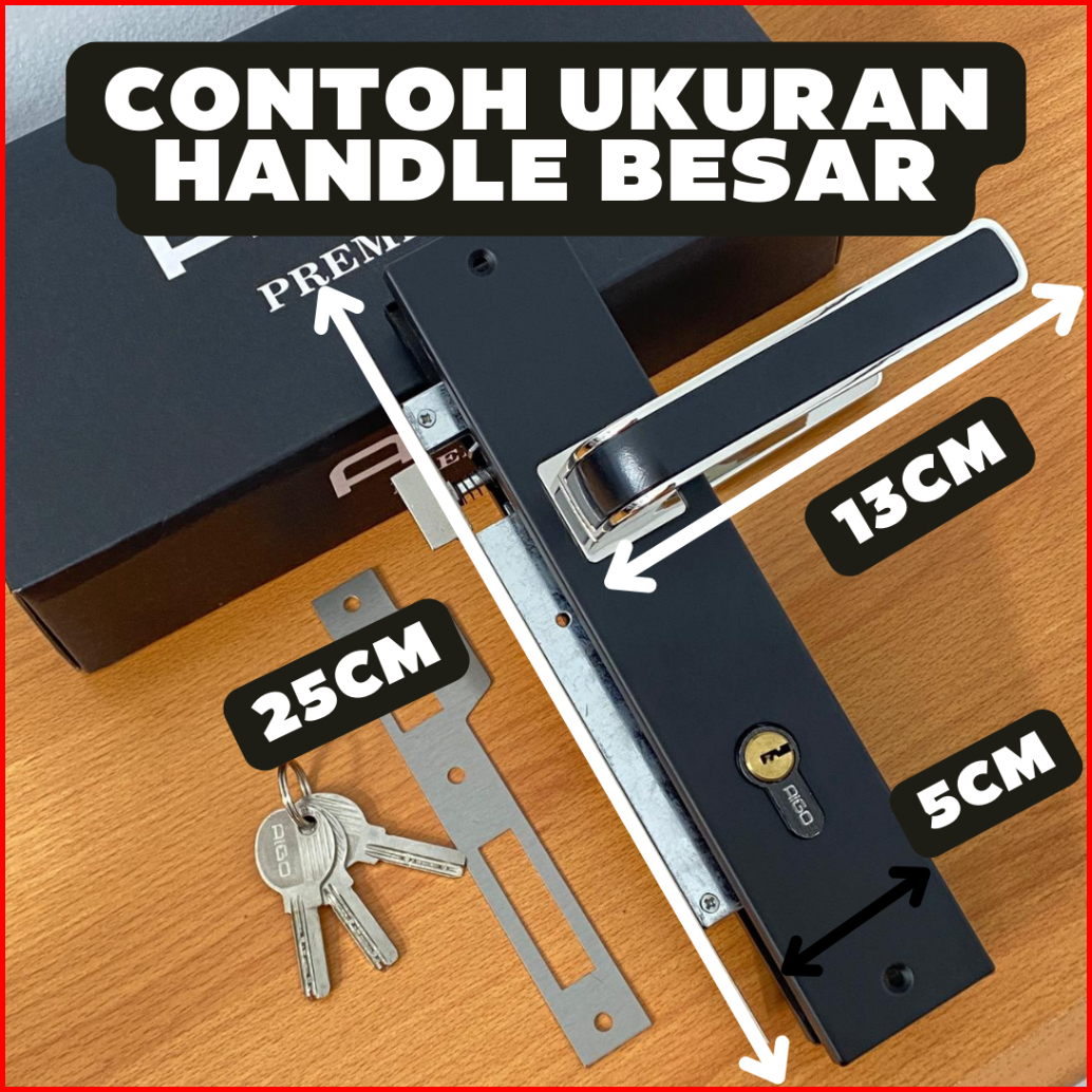 Handle Pintu 1 Set Uk 16 20 25 Cm Gagang Pintu Minimalis Premium Black Doff Kunci Pintu Rumah