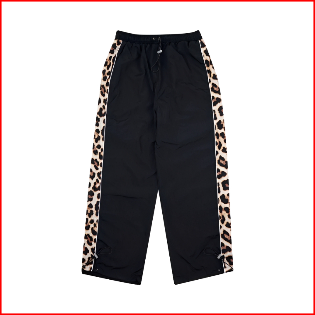 Long Pants Celana Baggy Pants Leopard Side Line Track Pants - Black