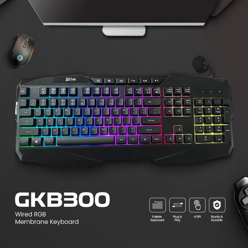 5Star Gaming GKB300 Keyboard Gaming Membrane Full Key Membrane Keyboard with Anti-Ghosting Keys RGB