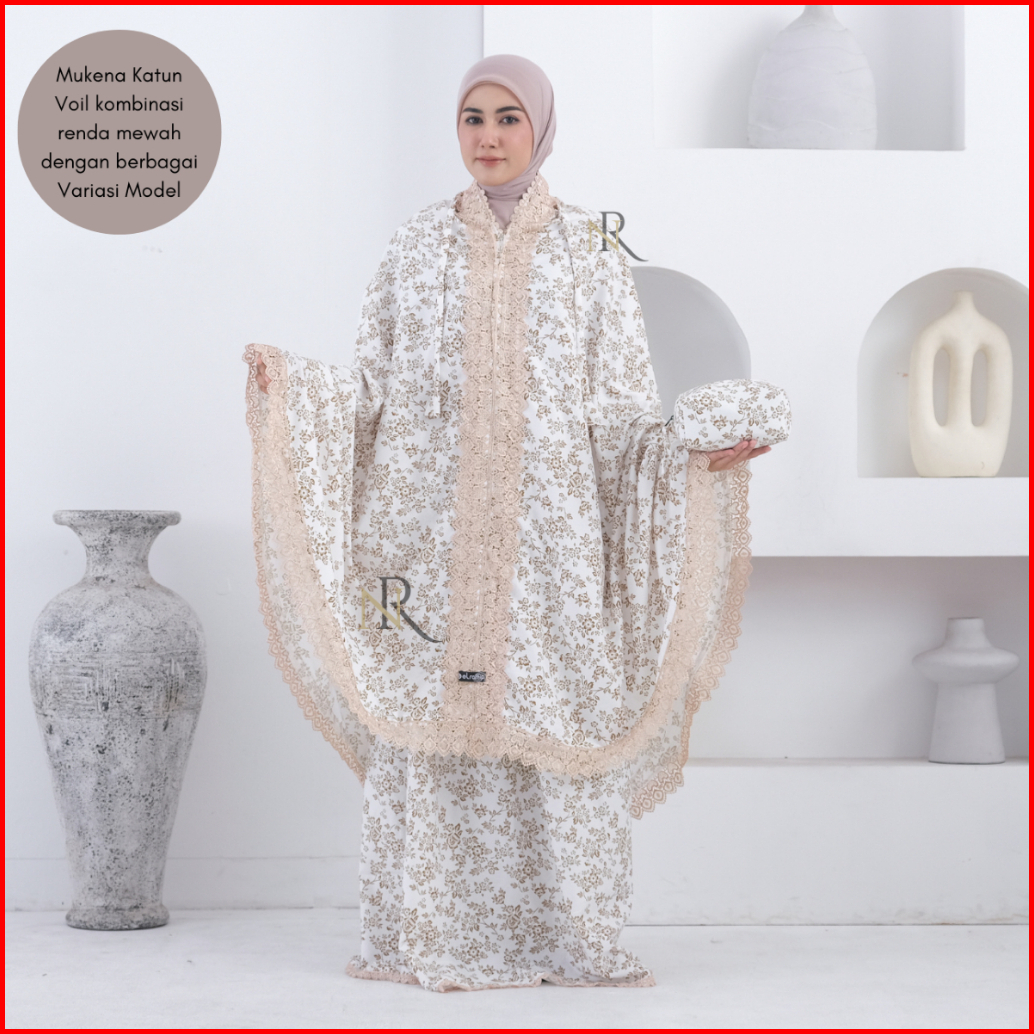 Elraffip-mukena Dewasa 2in1 Katun Voil Motif Printing Kombinasi Renda